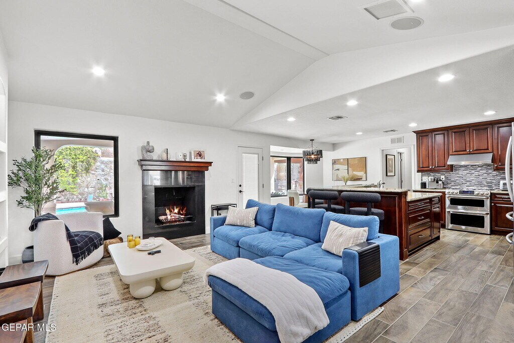 Located within the highly esteemed neighborhood of Eastridge,this gorgeous home offers a resort-like lifestyle with its heated pool,jacuzzi,a cozy outdoor cabana with tall wood-panel ceilings,an outdoor fire pit and an elevated garden with mountain and city light views. The serene garden features various fruit/vegetable trees and the yard is adorned with lavender,ideal for those with a green thumb! Inside,a wide open living and dining room welcomes you in with warmth. The kitchen and family room combine to create a welcoming environment for your guests. The kitchen features pristine wood cabinets,granite counters and a large kitchen island with barstool seating. The primary bedroom features a walk-in closet,updated shower tile and vanities. PLUS,the adjacent room has been completely converted to a closet. Ideal for those who need lots of closet space! All other bedrooms are well appointed and each bathroom has been updated. This home is a MUST SEE! Schedule a tour today!