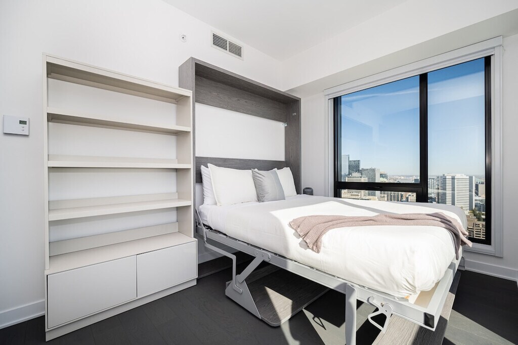 The advertised rate of C$4,949/month is the lowest available price, based on a 30 day(s) stay with a move-in date of July 24, 2026. Rates vary depending on the duration of stay, season, and other parameters. For exact pricing and additional pricing components, please visit our website and enter your desired move-in and move-out dates. The rate is applicable when billed upfront; it can be higher if billed in multiple payments. Feel at home in this luxurious high-rise in downtown Montreal, offering breathtaking city views from a spacious unit with expansive 10-foot ceilings that invite natural light through large, sunny windows. This apartment welcomes 4 guests and boasts high-end finishes throughout. It has 2 bedrooms with 2 queen beds and 2 full bathrooms. For your viewing pleasure, there is a smart TV, and you can stay seamlessly connected with high-speed Wi-Fi throughout your stay. The building, built in 2016, offers a fantastic terrace with a swimming pool and BBQ grills, a fitness center, a sauna and rain room, and many entertainment rooms. Indoor parking with in/out privileges is available for a separate fee depending on your length of stay. A variety of cleaning services, including biweekly or monthly, are available for an extra charge; please contact us for more information. Centrally located in the heart of downtown Montreal, this apartment is just steps away from the Lucien l’Allier metro station, train access, and the underground Montreal network. The Lucien-L’Allier Metro Station connects residents to various parts of the city. The Bell Centre, home of the Montreal Canadiens hockey team, is a hub of excitement. No parties of any kind or loud noises that can alter the harmony of residents are allowed. Smoking (including cannabis/cigarettes or any kind) is prohibited inside the apartment, balcony, or the building. Please care about your home away from home. [SI]