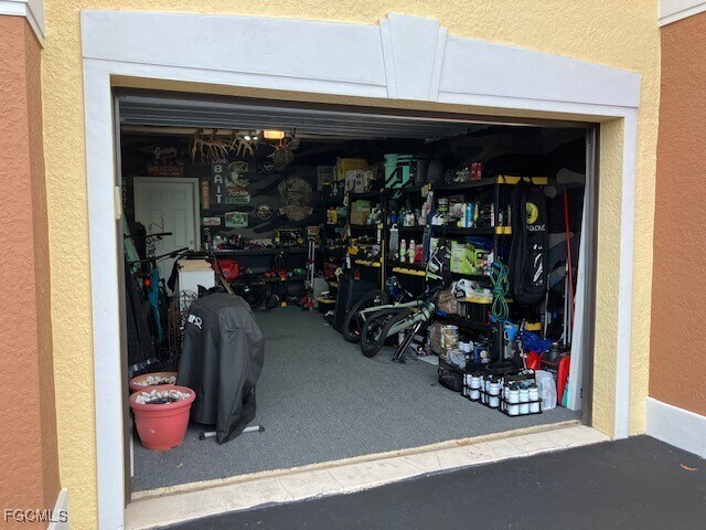 Rare LOWER UNIT in Bella Casa with EXTRA WIDE GARAGE! You also have a private storage room outside your front door. Tropical views inside and outside of this beautiful 1 x 1 condo. Newer flooring and customized walls channeling a tropical paradise. Granite countertops,newer stainless Samsung appliances including full size washer & dryer. Tiled wet areas,walk-in closet,vivid floor plan with open breakfast bar. Kitchen overlooks the living & dining area. The building is near the amenities of Bella Casa which offers clubroom,heated pool,spa,fitness center,lighted tennis courts,community garden,butterfly garden & an outdoor covered patio with a double-sided fireplace. This location provides excellent access to Hospital,schools,shopping,restaurants,Downtown Fort Myers,Whole Foods,public golf courses,Red Sox and Twins training facilities,FGCU,FSU,SWFL International Airport and the BEACH.