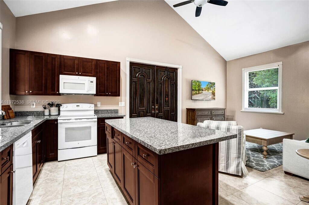 Beautifully updated 1 bed 1 bath guest house in sought-after Jupiter Farms. Completely fenced-in property (and it is even fenced off from the primary home) sitting on a huge lot with sprawling pavered driveway, screened-in patio, and covered outdoor entertaining areas. The house comes furnished as pictured and is elegantly appointed throughout, featuring granite countertops, an eat-in kitchen island, vaulted ceilings, a living room sleeper sofa, and the serenity and security of impact windows. This is a one-of-a-kind property. MLS # A11972538