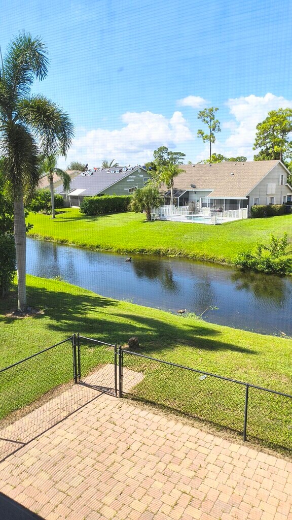 Beautiful townhouse located on a private road with no HOA. This is a 3- bedroom, 3 FULL bath home. Marble floors downstairs and carpet upstairs. Three en-suite bedrooms, 2 of them with their own private balcony. One of the balconies overlooking the canal, the other with street view. There is a screened porch and a paved patio. A lot of natural light, a very quiet neighborhood, you'll enjoy spending the winter here.