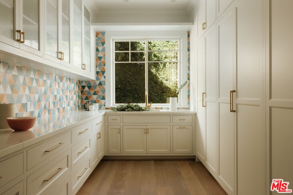 Nestled in the coveted enclave of Lower Mandeville Canyon, there is a quiet kind of prestige where both serenity and privacy are uniquely yours to experience. This elevated compound situated on nearly one acre offers expansive grounds with two large flat grassy areas for relaxation and play, a sports court, and stunning pool with spa. The main residence that was designed in collaboration with interior design firm, Maurice Gadson Design, reflects a beautiful balance of elevated design, warmth, and craftsmanship. The main level offers one guest bedroom with five additional bedrooms on the second floor. At the heart of the home, the dramatic living room and kitchen rise with soaring ceilings and open effortlessly to the gardens beyond, creating a seamless dialogue between indoors and out. A custom wood-paneled media room and secondary family room offer space designed for both comfort and versatility. Throughout the home, every element has been thoughtfully curated: Samuel Heath and Waterworks fixtures, vintage French lighting, textiles by Holly Hunt, Thomas Lavin, and Schumacher, Missoni runners, Calcutta stone, bespoke millwork, and striking Christian Lacroix wallpaper. These layers of texture speak to a home of substance where quality construction meets authentic character. Outdoors, an inviting entertaining space with outdoor kitchen, fireplace and dining area overlook your very own vineyard. Tucked away at the end of the garden is a lovely pool house for work, entertaining or rest. Boca de Canon is not simply a property, but a rare and irreplaceable setting. We welcome you to come and visit! MLS# 26657077