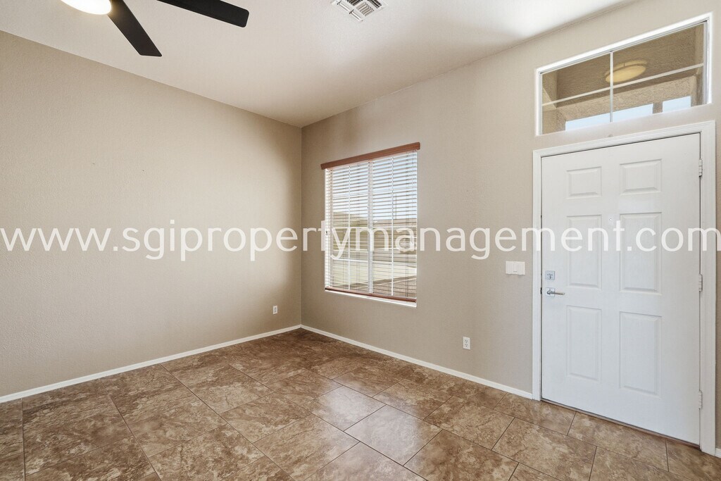 Beautifully upgraded 4-bedroom, 2-bath home in East Surprise, conveniently located near US 60, shopping, and dining! This home features an open kitchen with island, granite countertops, stainless steel appliances, tile backsplash, and pantry. The spacious primary suite offers dual entry doors and a private bathroom with dual sinks and a tiled shower. Enjoy added value with solar panels for significantly reduced utility costs, custom neutral paint, fans and blinds throughout, a 3-car garage, and washer and dryer included. Step outside to an incredible backyard designed for entertaining, complete with a paver-covered patio, outdoor kitchen with seating bar, built-in BBQ and Blackstone, private pool and spa with water features, RV gate with paver parking, and a raised garden bed. Located in the desirable Dave Brown at West Point community featuring walking paths and a childrens playground. 1 dog under 50 lbs conditional. RV will be removed before move-in. Visit our website at Lessee to verify all information Carpet Disposal Dogs And Cats Allowed Dryer Electric Range Pets Allowed Private Pool Tile Washer Washer/Dryer In Unit