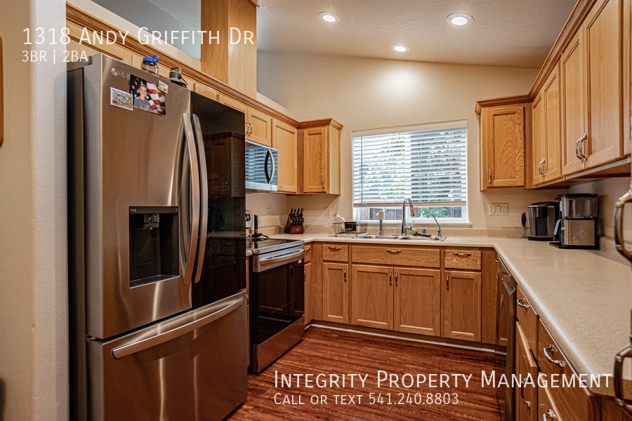 Stylish Single-Level Home in Mayberry Meadows Welcome to 1318 Andy Griffith Dr, a beautifully maintained 3 bedroom, 2 bathroom home located in the sought-after Mayberry Meadows neighborhood of Grants Pass. This 1,756 sq ft, single-level ranch-style home offers an open, airy layout with vaulted ceilings, solar tubes, and a cozy gas fireplace in the second main living space. The kitchen is well-appointed with laminate counters, a pantry, and a full appliance package including refrigerator, range, microwave, dishwasher, washer, and dryer. A bonus room and dining area add flexibility for work-from-home or entertaining. The primary suite features a walk-in closet and en suite bath with double vanity. Additional highlights include ceiling fans, built-ins, dedicated laundry, and a mix of carpet and LVP flooring throughout. Outside, enjoy a fenced, landscaped yard, patio, sprinkler system, and storage shed. Parking is easy with a 2-car attached garage plus driveway and street parking. The home includes central air, a heat pump, and forced-air gas heating. Set on a quiet, paved street close to schools, shopping, and restaurants —this home blends comfort, style, and an easy lifestyle. Frequently Asked Questions: STATUS: Available Now PET RESTRICTIONS: One dog under 40 lbs with additional $500 deposit required SMOKING: No smoking, no vaping, no marijuana INCOME REQUIREMENT: Gross 3 times monthly rent CREDIT REQUIREMENT: At least 600. MOVE-IN COSTS: First Month Pro-rated, Security Deposit $3,000 DEPOSIT TO HOLD: $500 upon approval, holds up to 7 days. SHOWING INSTRUCTIONS: Schedule Online: APPLICATION INSTRUCTIONS (HOW TO APPLY): Apply online. All complete applications are processed as they are received. First approved applicant to submit $500 deposit gets unit. Go to If applying with a Pet or Assistance Animal, complete profile at HOUSING ASSISTANCE: Income must meet 3x the amount of tenant portion, plus utilities. More Information: • Property Description Details • AREA INFORMATION: Located within the Mayberry Meadows Subdivision near Williams Highway (Hwy 199) FLOORING: LVP/Carpet GARAGE/PARKING : 2 car garage plus driveway parking KITCHEN APPLIANCES INCLUDED: Fridge, oven/stove, dishwasher LAUNDRY APPLIANCES INCLUDED: Washer and Dryer included HEATING/COOLING: forced-air natural gas heating and a heat pump along with central air conditioning PROPERTY TYPE: Single Family Dwelling UTILITIES INCLUDED: Tenant responsible for all utilities (Power, Gas, Water/Sewer, Garbage) YEAR BUILT: 2004 YARD: Landscaping is tenant responsibility OTHER INFORMATION: Furnishings included for listing purposes only and are not included • Application, Lease Terms, and Fees • *ADDITIONAL FEES NOT INCLUDED IN RENT: APPLICATION FEE: $55 RENTER'S INSURANCE: Required unless exempt by ORS 90.222 PET FEE: $35 per pet PET SCREENING FEE: $30 per pet APPLICATION TURNAROUND TIME: 2-3 business days LEASE DURATION: 6 Month Min • HOA Instructions • None *All information is deemed reliable but not guaranteed and is subject to change.* All Integrity Property Management residents have the exciting opportunity to enroll in the Resident Benefits Package (RBP)! For just $39.95/month residents can enjoy exclusive benefits including HVAC Quarterly Filter Deliveries, comprehensive renter's insurance coverage, credit building to boost their credit score with timely rent payments, up to $1M in Identity Theft Protection, our top-notch resident rewards program, and much more! Residents can enhance their RBP by adding on-demand pest control for an additional $14/month.