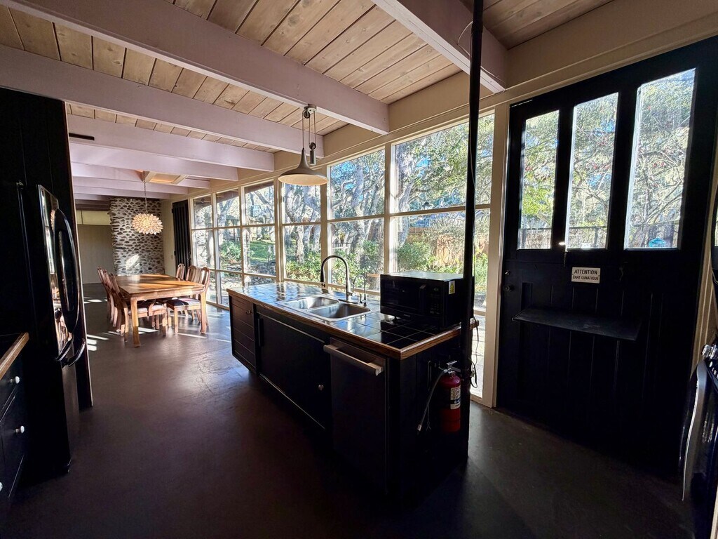 PROPERTY MANAGER Chad Stephens, DRE #02133946 RATES Base Rent: $4,400.00 Deposit: $4,400.00 Other Fees: Application Fee: $50 per applicant Resident Benefit Package: $44.95 monthly Document Preparation Fee: $150 PET: Pets may be considered on a conditional basis. If approved, additional pet rent and/or pet deposit may apply. A pet profile should be submitted via for consideration prior to approval. LEASE STRUCTURE This property is available starting with a 12-month lease. AVAILABILITY Available Move-in Date: February 1, 2025 Available to View: Immediately For viewing instructions, please contact Chad Stephens for an appointment at ext. 203 PROPERTY OVERVIEW Welcome to 1318 Miles Avenue, an unfurnished 2-bedroom, 2-bathroom home located in the Del Monte Park area of Pacific Grove. This unique artist’s home offers privacy, architectural character, and a tranquil, wooded setting while remaining close to downtown amenities and within the Pacific Grove School District. Designed for those seeking a peaceful retreat with creative flexibility, this home blends indoor-outdoor living with natural surroundings. INTERIOR FEATURES Entry & Living Spaces Step into the entryway and immediately experience the home’s light-filled interior, featuring exposed beam ceilings, warm wood paneling, and expansive windows that frame views of the surrounding oak canopy. Natural light flows throughout the main living areas, creating a seamless connection between indoors and the serene courtyard outside. Living Room The inviting living room features a wood-burning fireplace with a natural stone surround and hearth, serving as a warm focal point. Large windows bring in abundant natural light and courtyard views, enhancing the home’s calm and welcoming atmosphere. Dining Area Adjacent to the kitchen, the formal dining space comfortably accommodates a full-size table, making it ideal for entertaining or relaxed everyday meals. Kitchen The kitchen offers a functional layout with a center island, ample cabinetry, and large windows overlooking the courtyard greenery. Two exterior doors—including a Dutch door—provide convenient access to an outdoor patio just off the kitchen. Appliances include a gas range, refrigerator, dishwasher, garbage disposal, filtered water system, and an in-unit clothes washer and dryer. BEDROOMS Primary Bedroom The primary suite is a spacious and serene retreat featuring exposed wood-beam ceilings and polished concrete floors that reflect the home’s architectural character. Large windows provide treetop views and natural light, with ample space for a king-size bed and additional furnishings. The en-suite bathroom offers convenience and privacy. Secondary Bedroom The guest bedroom is located down a short stairwell and features warm wood-paneled walls, natural light, and a private feel. An exterior door from this level opens directly to a private patio area. BATHROOMS Guest Bathroom: Walk-in shower, updated fixtures, and a window providing natural light and greenery views. Primary Bathroom: En-suite access, designed for comfort and functionality. OUTDOOR FEATURES Step outside to a fully fenced, park-like courtyard with mature oak trees, established landscaping, and gently winding concrete and stone walkways. The backyard extends into a wooded, garden-style retreat featuring multiple detached sheds and studio-style structures. These auxiliary spaces are ideal for art studios, creative workspaces, storage, or hobbies. Decks and pathways connect the structures, creating a secluded compound-like setting rarely found in residential properties. The home has a radiant heating system throughout, which keeps the temperature very controlled at various times throughout the year. LOCATION HIGHLIGHTS Walkable to: Neighborhood streets and local green spaces Nearby (by car): Downtown Pacific Grove, beaches, schools, shopping, dining, and peninsula amenities Chad Stephens, DRE #02133946 RESIDENT BENEFITS PACKAGE Pacific Grove Property Management residents who will reside in a property for 90 days or more are automatically enrolled in a Resident Benefits Package (RBP) for $44.95/month, which includes liability insurance, credit building to help boost the resident’s credit score with timely rent payments, up to $1M identity theft protection, HVAC air filter delivery (for applicable properties), our best-in-class resident rewards program, and more. Additional details provided upon application. Liability insurance may be offered à la carte for residents residing in a property for less than 90 days.