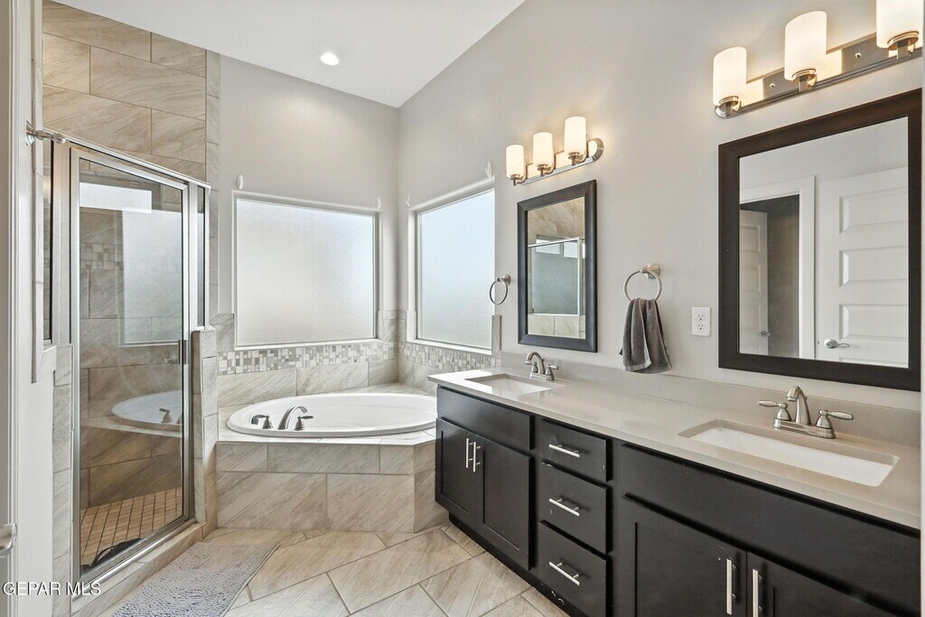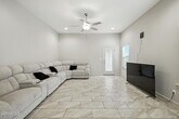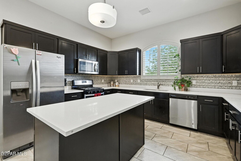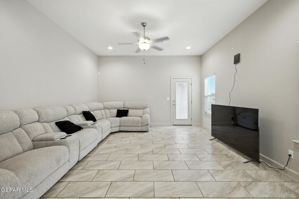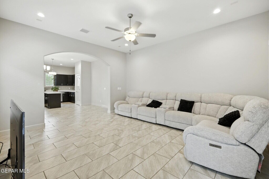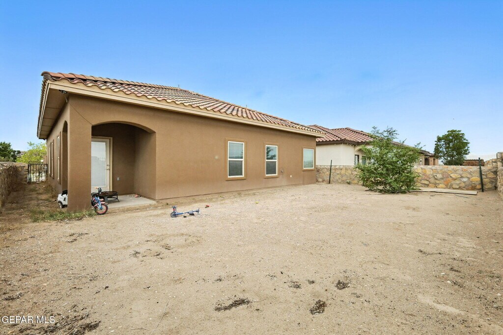 This beautiful 3-bedroom,2-bath single-story home in the desirable Mission Ridge subdivision offers comfort,style,and convenience. Featuring an open floor plan with a welcoming foyer,spacious living area,and a modern kitchen with island,pantry,and stainless-steel appliances—including refrigerator. The primary suite boasts a double vanity,shower/tub combo,and walk-in closet. Additional features include ceiling fans,tile and carpet flooring,and blinds throughout. Home is partially furnished,with the option to remove any unneeded furniture upon request. Enjoy a private,walled backyard with back yard access,landscaped front yard,and a double attached garage. Located in the Socorro ISD,near Dr. Sue Shook Elementary,Eastlake Middle,and Eastlake High. Easy access to shopping,dining,and major roads. This well-maintained home is move-in ready—schedule your viewing today!