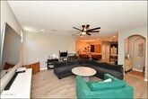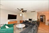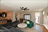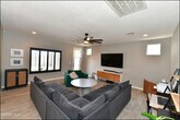 This stunning 3-bedroom,2-bath home blends modern style with comfort. The open floor plan features a light-filled living area,upgraded modern ceiling fan,and a dining space accented by a stylish chandelier. The kitchen boasts stainless steel appliances,a premium Samsung Bespoke fridge,and plenty of counter space for cooking or entertaining.