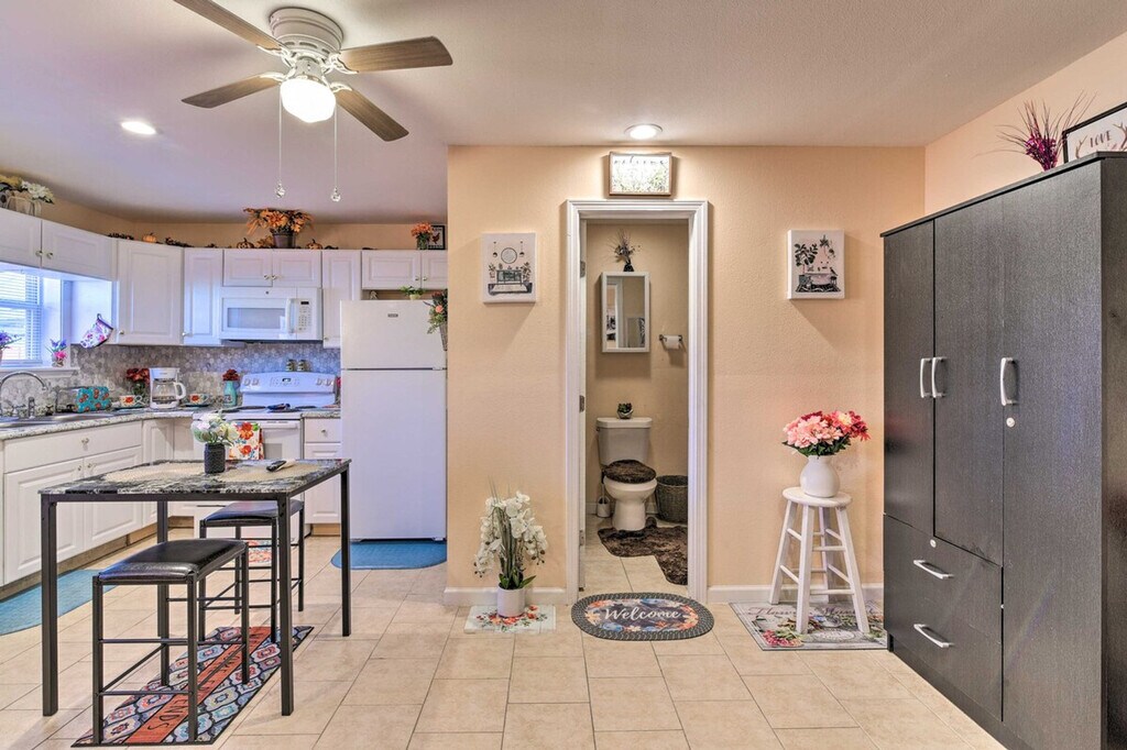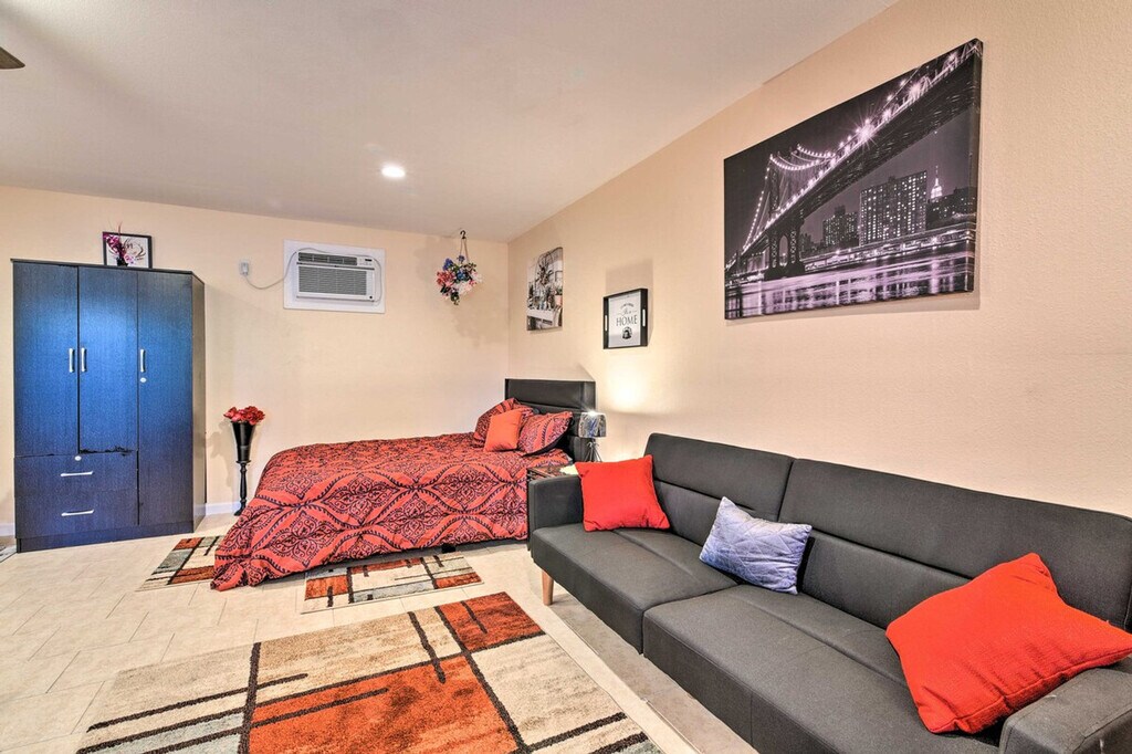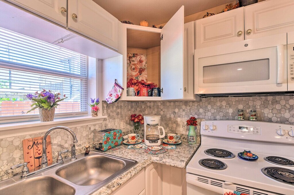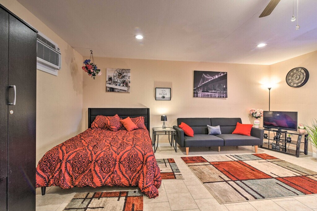 Feel at home in this charming studio in Galveston Island, ideally located to explore the area. This cozy retreat is the perfect place to rest between beach days, amusement rides, and local sightseeing tours. This vacation rental provides a simple, hassle-free stay, equipped with a full bath, a well-stocked kitchen, and a Smart TV with cable. The kitchen is well equipped with cooking basics, dishware, flatware, a toaster, and a drip coffee maker. Additional features include a deck with Adirondack chairs and a charcoal grill, a cafe table, ceiling fans, a shared washer/dryer, towels, linens, a hair dryer, an iron and board, trash bags, paper towels, beach chairs, and air conditioning. Shared street parking is available for 2 vehicles. Within walking distance, you'll find local shops and eateries, and a quick ride away you'll be lounging on Galveston Beach and exploring the pier. Smoking, pets, events, parties, and large gatherings are not allowed. Photo ID may be required upon check-in. Other vacation rentals are on-site, and other travelers may be present during your stay. [SI]
