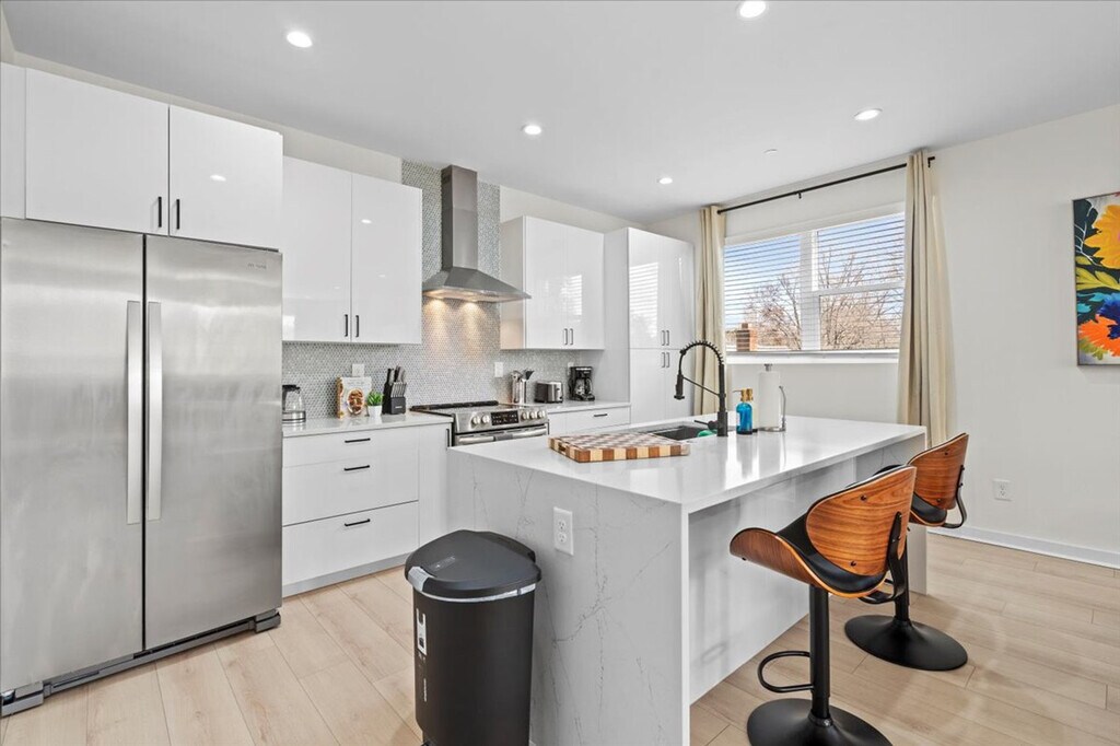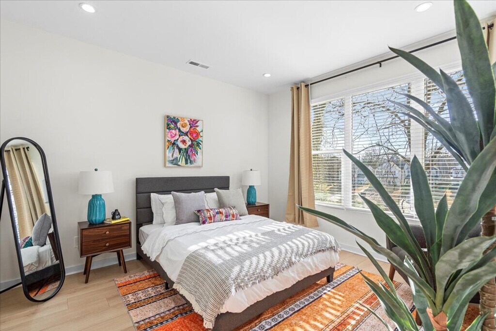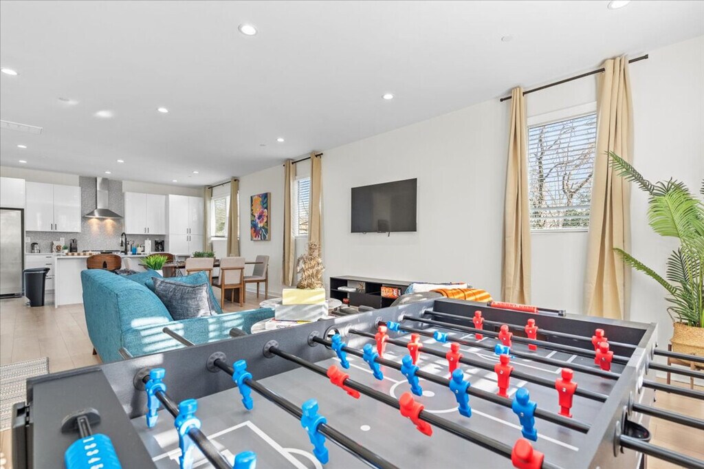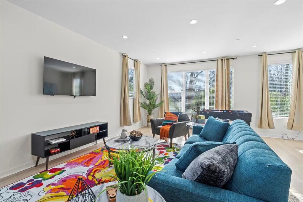 Experience the pinnacle of urban living in this meticulously styled 3-bedroom, 4-story residence located in the heart of the Plaza-Shamrock neighborhood in Charlotte, NC. Thoughtfully designed, this condo boasts a rooftop lounge area on the 4th floor, providing a picturesque escape. Feel at home in this urban oasis. This stylish condo is equipped with a fully equipped kitchen for cooking and dining, a living area with a 55" TV and a lively foosball table, and an in-unit washer and dryer for your convenience. Each of the 3 bedrooms features an en-suite bath, ample closet space, and a queen bed for a restful night's sleep. Attached garage accommodating 1 car and an outdoor patio (rooftop) with a lounge area for relaxation are available. Wi-Fi is available for seamless connectivity and central heat and AC are included. Immerse yourself in the lively ambiance of Plaza Midwood and the adjacent NoDa district, both just moments away. With convenient access to the light rail station and Uptown Charlotte, this residence seamlessly combines thoughtful design with urban accessibility. Universities close by include Johnson C. Smith University, Johnson & Wales University Charlotte Campus, and Queens University of Charlotte. Hospitals close by include Atrium Health Mercy, Novant Health Presbyterian Medical Center, and Carolinas Medical Center. Parks close by include First Ward Park and Romare Bearden Park. Mid-stay cleaning is available for a fee and needs to be scheduled ahead of time. If a noise complaint is received, a fine will be charged. Excessive mess and trash left at the property upon checkout may result in additional fees for cleaning. For the comfort and peace of all guests and neighbors, quiet hours are in order from 9 PM until 9 AM. Smoking is strictly prohibited within the property. Pets are not allowed. [SI]