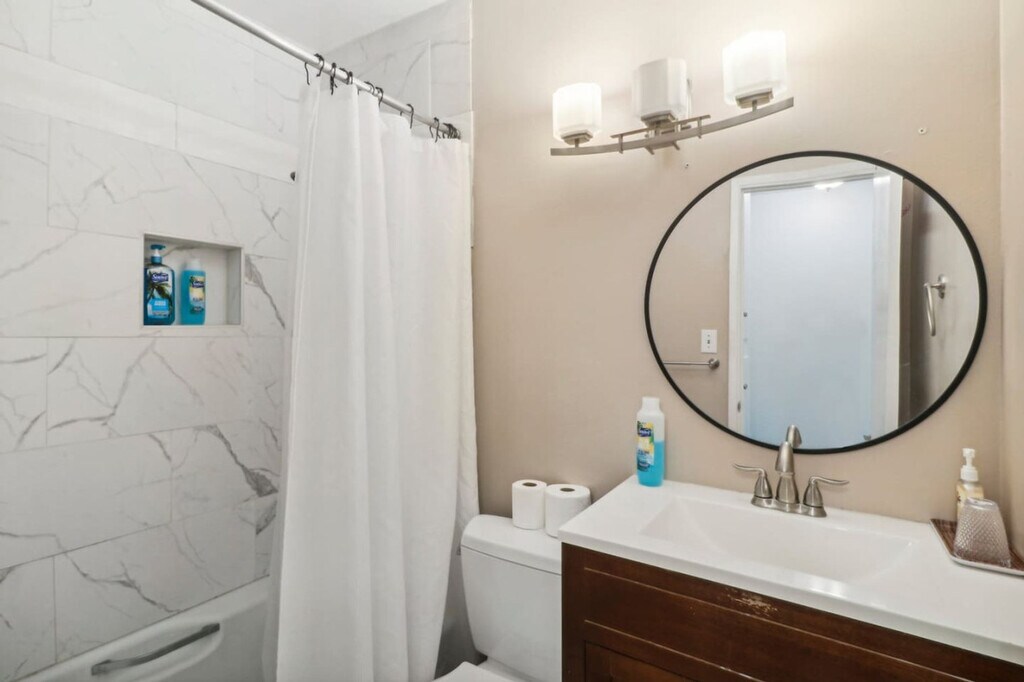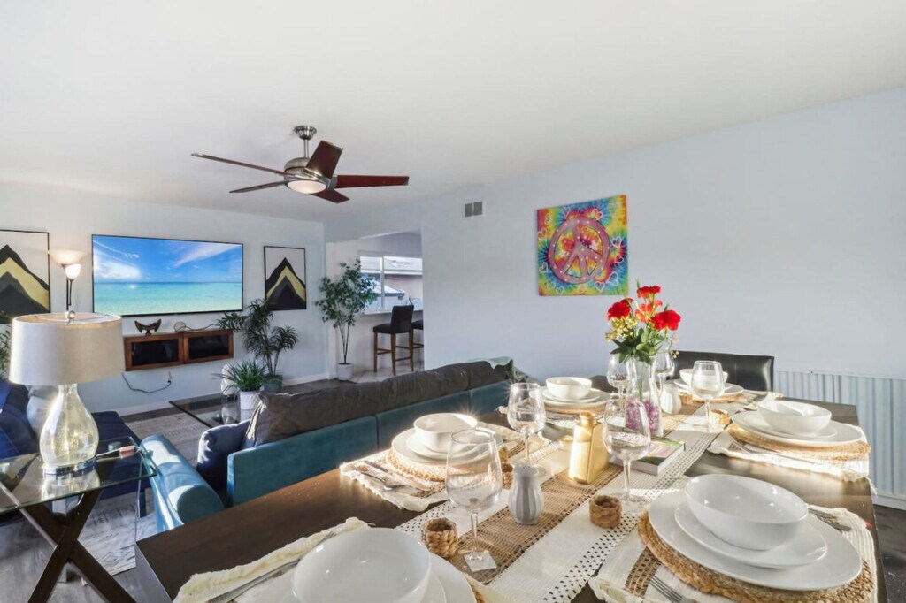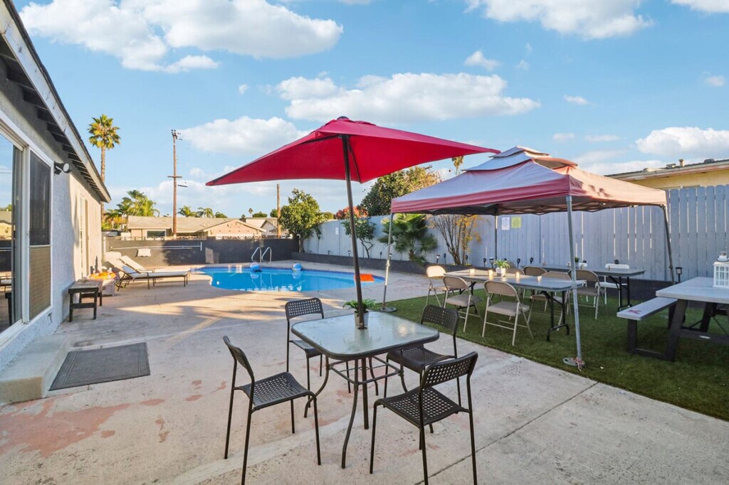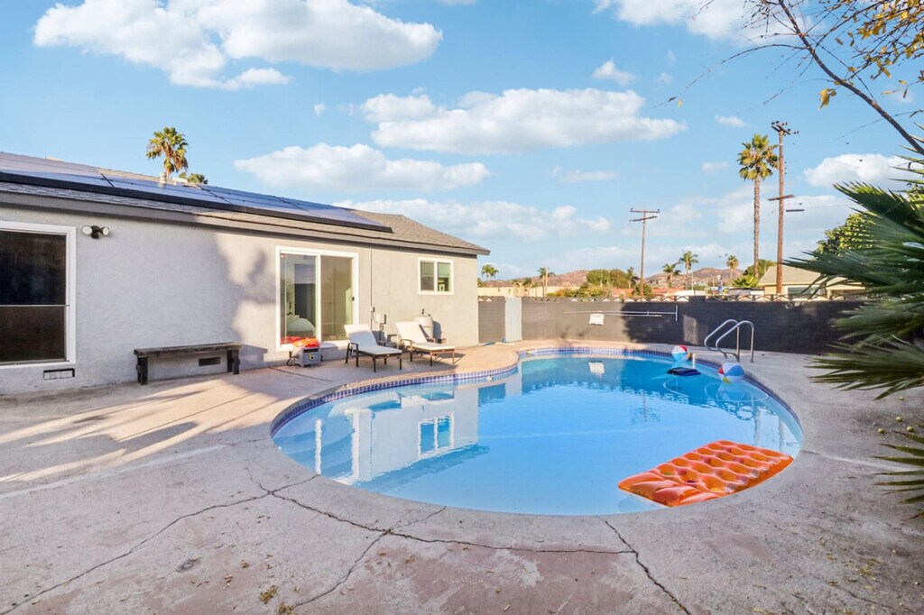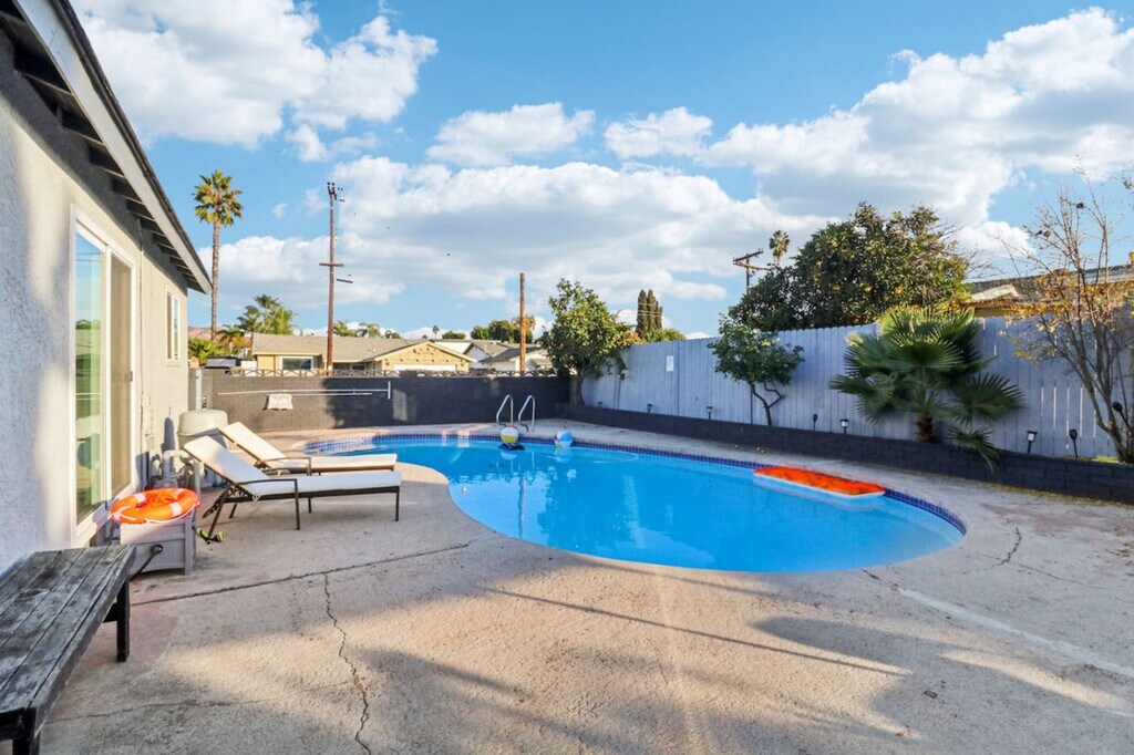 Welcome to this modern 3-bedroom, 1226 sqft house in El Cajon, where you can feel at home. This property features a pool, parking for up to 4 vehicles in the garage and driveway, and is pet-friendly. Conveniently located just 5-10 minutes from shopping centers and local restaurants, this home offers both comfort and accessibility. The kitchen is equipped with all modern appliances, including a coffee machine, and essentials like coffee, cooking oil, sugar, and salt. Enjoy your meals at the dining tables and chairs available both inside and outside the house. The air-conditioned living area features flat-screen smart TVs with cable and streaming services, providing ample entertainment options from the comfort of snug couches. Pets are welcome in this home. Parking is available for up to 4 vehicles in the garage and driveway. For those traveling with infants, a baby crib is provided. Early check-in or late check-out is available for a small fee, and guests can be reimbursed for refilling the propane tank for the gas grill. Situated in El Cajon, this home is just a short drive from shopping centers and local restaurants, making it easy to explore the area. For accurate distances to specific locations, use Google Maps with 'East Lexington Avenue El Cajon, CA 92019'. This property has a strict no-noise policy to avoid disturbing neighbors. Any noise violations after 9 PM may result in a $1000 penalty. Unauthorized guests or pets will incur a $100 per night penalty. Late check-out without prior approval will be fined twice the nightly rate. Ensure all windows and doors are locked when leaving the property. Report any damages or issues immediately. Dispose of trash in provided bins to avoid overflowing. Avoid putting trash or toilet paper in the toilet bowls to prevent plumbing issues, which can result in a bill of $300-$500. No DJ is allowed, with a $1000 penalty for violations. The HOA imposes fines for violations, especially regarding parking, noise, and activities. For remote work, this home offers a choice of desks and chairs both inside and outside, along with 500Mbps Wi-Fi, making it easy to host online meetings or share large files. A laptop computer is not included.