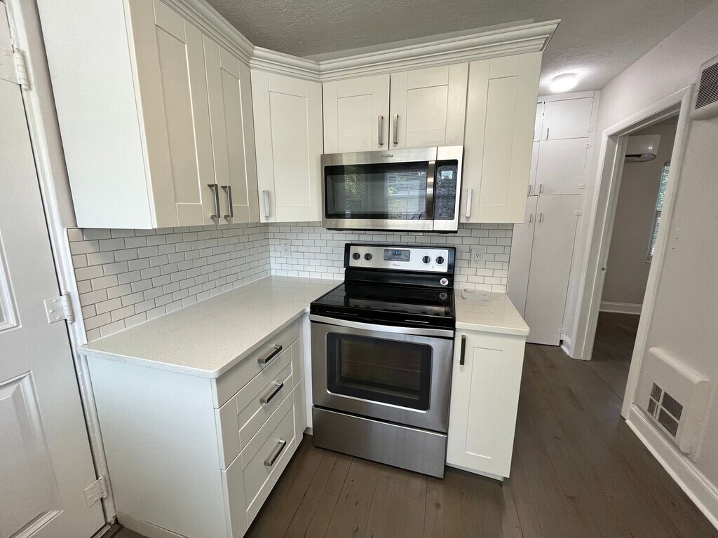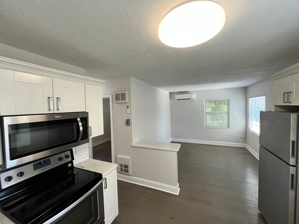 Virginia/Mills area!! Above Detached Garage Apartment and rented separately from house. Granite Counters, Stainless Appliances, Kitchen sink has restaurant style faucet. Real Grey-Stained Wood Floors. Living room 10 x 9 and Bedroom 10 x 9. Walk in Closet. Very Modern bathroom with large walk-in shower and Southern Style Wide sink. Includes use of 1 side of the garage with Washer/Dryer as is. Includes 1 parking spot. 2 blocks East of Hawkers and Track Shack Or Easy walk to Fresh Market