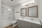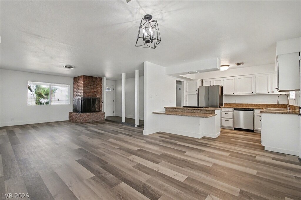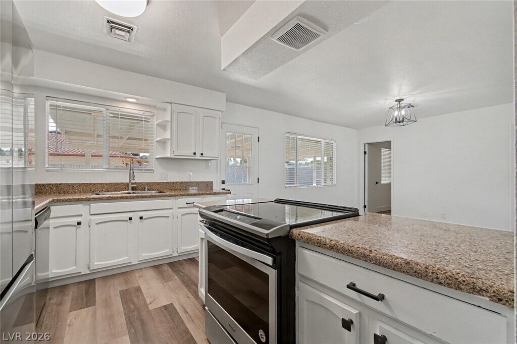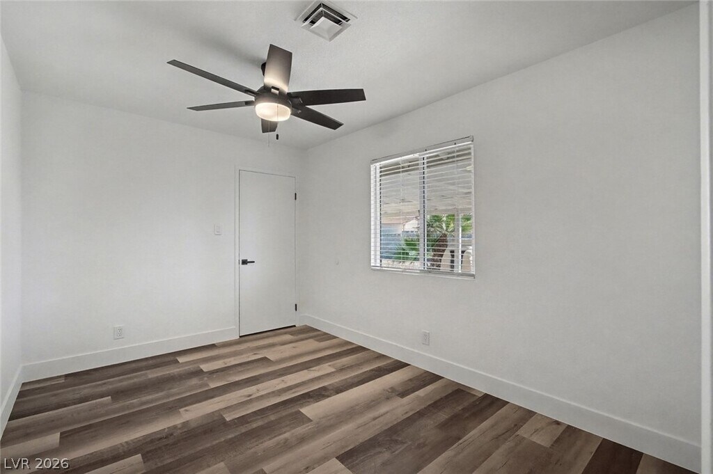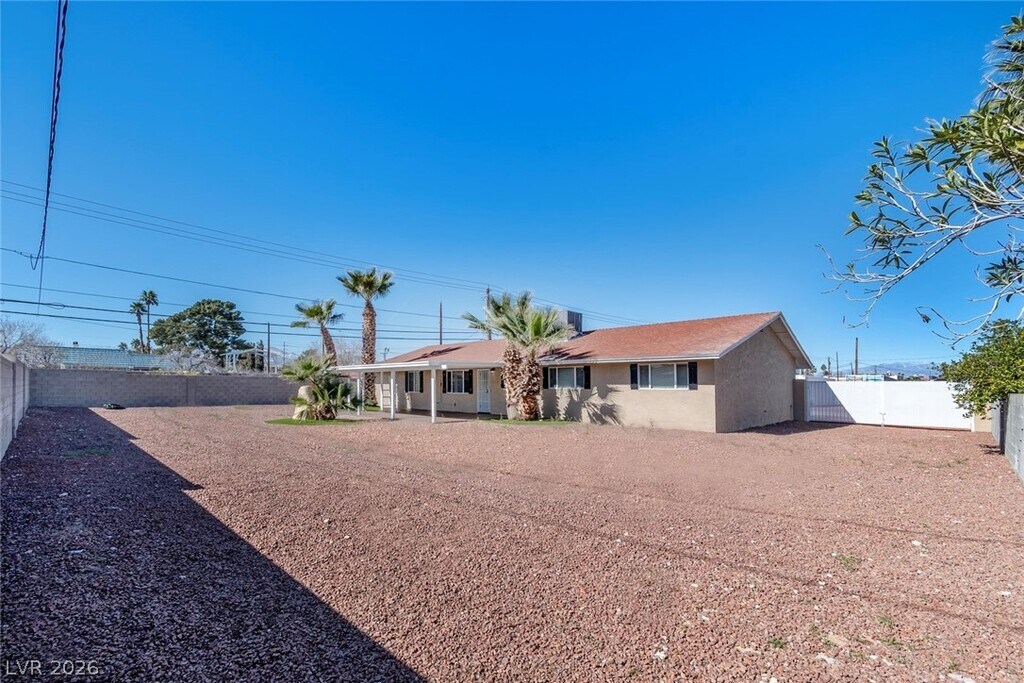 Charming and fully updated 3-bedroom single-family home plus den in the older, highly desirable part of Las Vegas, located off Lindell and Charleston, just west of Decatur. This inviting home sits on a private street with no other houses and features a private gated driveway, covered carport in front of the garage, and RV parking with RV gates on both sides of the .77-acre property. Inside, you’ll find fresh, modern vinyl wood-look flooring throughout and beautifully updated bathrooms, along with a completely redone interior including a new roof and new air conditioning. The spacious kitchen offers granite countertops, a breakfast bar, and sleek black appliances, opening to a versatile den area with a walk-in closet that could easily serve as a comfortable fourth bedroom. The primary bedroom includes mirrored closet doors, adding to the bright, open feel of the space. Outdoors, enjoy low-maintenance landscaping and a large covered rear patio approximately 20’ x 18’.