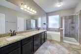 This home boasts a gaslog fireplace,perfect for cozy evenings,and a fully fenced backyard,offering a private outdoor space for relaxation or entertaining. The primary bedroom is a true retreat,featuring an ensuite bathroom with his and her's sinks,a separate shower,and a luxurious soaking tub. The secondary bathrooms also offer a convenient tub/shower combo. The open-concept kitchen flows seamlessly into the family room,creating a spacious and welcoming environment. The home is finished with a mix of tile and carpet flooring,adding a touch of elegance and comfort. The kitchen/dining combo is perfect for those who love to cook and entertain. This home is truly move-in ready and waiting for you to make it your own. MLS# 74487386