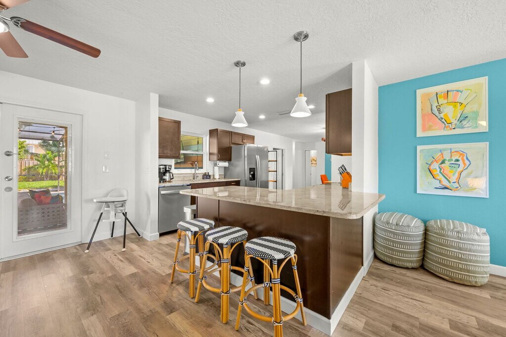 This 4-bedroom home in Palm Harbor, FL is packed with amenities for an amazing vacation. Feel at home with expansive backyard space, a private pool, a fire pit, a wet bar, and an outdoor patio with dining and TV. Enjoy a BBQ grill, games like ladder toss, corn hole, giant connect 4, pool volleyball, and basketball. The fully equipped kitchen and dedicated workspace make it perfect for families and groups. Dog-friendly and with ample parking, this home is ready to welcome you. Pack your bags and relax in this spacious 4-bedroom, 2-bathroom home that accommodates up to 10 guests. Nestled in a quiet Palm Harbor neighborhood, this home offers a cozy retreat while keeping you close to the best beaches, golf, and dining in the area. Step inside to find open and inviting living spaces, a fully equipped kitchen ready for big family meals, and plenty of room for everyone to unwind. Whether you’re gathering for movie night, sipping coffee on the patio, or heading out for a day of adventure, this home has you covered. Up to 2 dogs are allowed for $125 per stay, but no cats please. Parking is available in the driveway for up to 4 cars, with no street parking allowed. The pool is not heated but is generally warm enough to swim in from June to September. With its prime location near Honeymoon Island, Innisbrook Resort, and charming local restaurants, you’ll be just minutes away from sandy beaches, nature trails, golf courses, and great eats. Nearby attractions include Wall Springs Park, Palm Harbor Museum, Honeymoon Island State Park, and Innisbrook Golf Resort and Spa. Enjoy dining at local favorites like Ozona Blue Grilling Co., Crabby Bill’s Palm Harbor, Casa Ludovico, Mystic Fish, and Packard’s Steakhouse. Getting around is easy with car rentals and rideshare services like Uber and Lyft readily available. Check-in is at 4pm and check-out is at 10am. No parties are allowed, and violations may result in immediate termination of the stay. Guests must be 21 years or older to book this property. A guest verification process is required within 48 hours of booking confirmation, and a rental agreement must be signed prior to check-in. A non-refundable $60 damage waiver is required, covering accidental damage during your stay if reported before check-out. Includes a dedicated workspace for remote work-friendly convenience. Registration Number: STR25-00131 [SI]