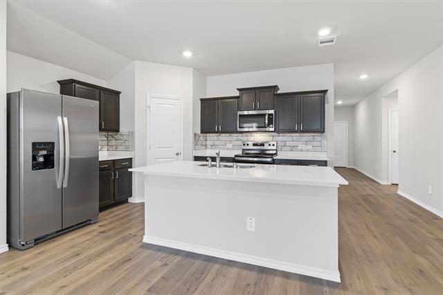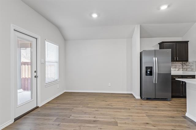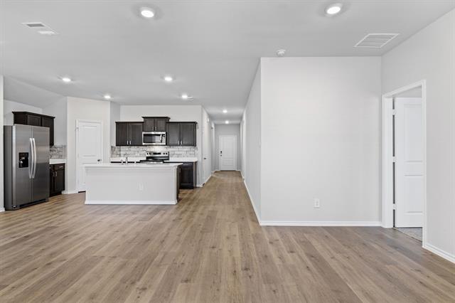 Like New 2024 Build in Providence Village – Move-In Ready! Call this stunning four-bedroom, two-bath home your own! Nestled in the charming community of Providence Village, this home features a bright and open floor plan designed for modern living. Inside, you’ll find luxury vinyl plank flooring throughout, elegant quartz countertops, and rich stained cabinetry accented by a designer backsplash in the kitchen. The kitchen is equipped with stainless steel appliances, including a side-by-side refrigerator, electric range, and built-in microwave, making meal prep effortless. Recessed lighting and large windows flood the space with natural light, creating a warm and inviting atmosphere. Plus, for added convenience, a washer, dryer, and refrigerator are included. Want a high-tech home? This property is fully equipped with cutting-edge smart home technology, including smart switches throughout, a smart thermostat, front door lock, and garage door opener, all seamlessly integrated into a smart app and Smart Control panel for remote access. A Ring doorbell enhances security, and a pre-installed smart security system provides extra peace of mind. Upgrade this feature for just $50 per month! Step outside to enjoy a quaint backyard and covered patio, perfect for relaxation. Located just minutes from Highway 380, this home offers easy access to shopping, dining, and entertainment. It is also situated in the highly rated Aubrey ISD, making it an excellent opportunity for homeowners. Don’t miss out—schedule a tour today! (Note: Grass has been edited in listing photos.)