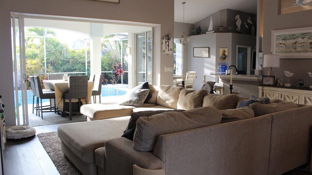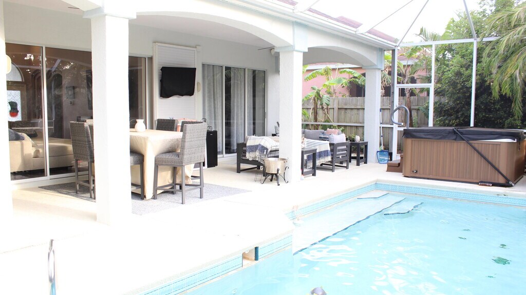 Welcome to this stunning beachside rental property. This home offers 3 spacious bedrooms with an inviting living space. Large window sliders that open up to the expansive covered lanai,private pool and hot tub. The outdoor space includes lush landscaping for total privacy. The fully equipped kitchen is a chef's dream,complete with modern appliances,ample counter space and a breakfast bar for casual dining. This is true coastal living with the beach just minutes away. Rent includes lawn care,pool maintenance and pest control. Schedule a showing today. MLS # 1074750