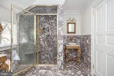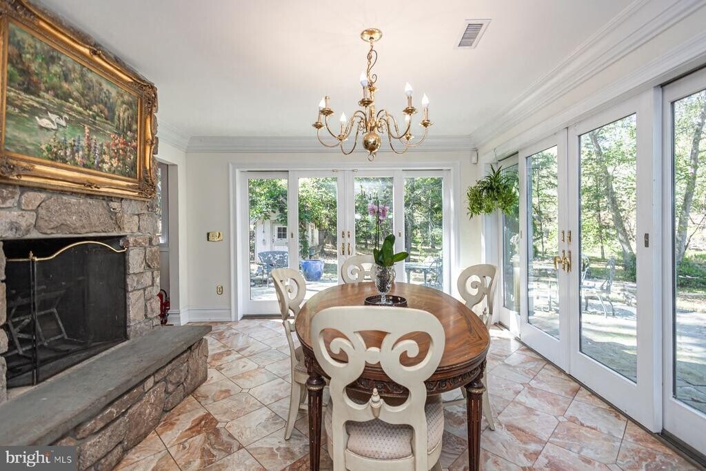 If privacy and tranquility are what you seek, this gated 32-acre Bucks County estate is your perfect retreat. Down and long, winding drive into the hollow, nestled along the scenic Tinicum Creek, the Tudor-style residence combines timeless architecture with refined finishes. A grand entry sets the stage for interiors that showcase stone fireplaces, pegged oak floors, and a custom-crafted staircase crowned with a bronze railing. Sunlight pours through French doors and windows, framing stunning views of the surrounding natural landscape. Enjoy a sunroom perched above the cliffs, along with four bedrooms and four marble-clad baths, all appointed with Sherle Wagner fixtures. The property’s serene setting offers unmatched seclusion yet keeps you minutes from Doylestown, New Hope, Lambertville, Frenchtown, the Delaware River, and towpath trails.