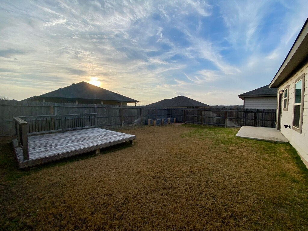 Available today for you to rent! Single family home with a 2-car garage located in Solms Preserve community. Move in ready home with 3 bedrooms, 2 bathrooms, and 1,349 sqft of living space.. Open floor plan with tons of natural light, and a great room with enough space for everyone! Kitchen includes granite countertops, stainless steel appliances, and 42" cabinets (fridge included). Enjoy luxury details of this home that include vinyl plank floors throughout the whole home (except bedrooms), 9 ft ceilings, and Sante Fe style doors. The separate laundry/utility room has shelving for storage AND comes with a washer and dryer included! The backyard is large with a walk-out patio, open views, an irrigation system, a elevated gardening bed, and a relaxing outdoor deck to enjoy the stunning Texas sunsets. This home is clean and move in ready.