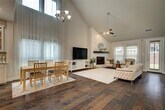 Welcome to this stunning 4-bedroom, 3.5-bath home in Wylie ISD. Featuring an open concept design, the airy living room boasts a shiplap wall with a cozy fireplace. The gourmet kitchen impresses with a large island and custom cabinets. The downstairs primary suite offers an ensuite with dual sinks and a garden tub. Upstairs, find a spacious game room, media room, and a loft with a custom barn door. A bonus room downstairs adds extra versatility. Enjoy the beautifully landscaped, fenced backyard with a covered patio, perfect for outdoor entertaining. Conveniently located near Woodbridge Country Club, shopping, entertainment, and Lake Ray Hubbard. This home is a must-see!