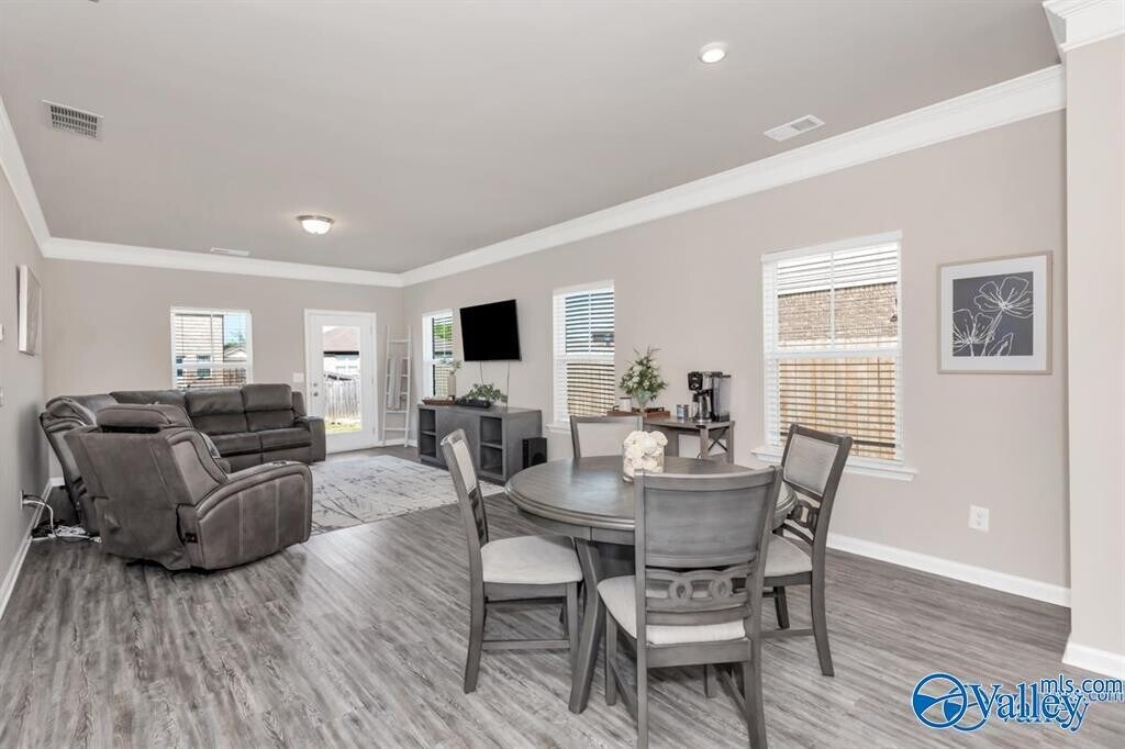 Beautiful and close to New! 3 bedroom 2 bath home with a flex space/office,has it all and still like new. This home is conveniently located to Huntsville,Research park,Redstone Arsenal and more! It has beautiful luxury vinyl plank flooring,stunning trim,and granite counter tops. Large Open floorpan. Here you will also find an isolated primary suite with a large walk in closet,oversized tile shower,and water closet,a spacious laundry room,and a spacious back yard and patio perfect for all types of living!