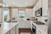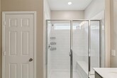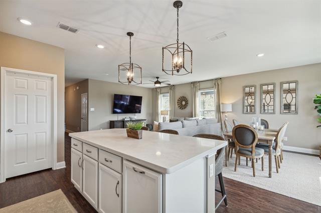Welcome to your serene oasis nestled along a tranquil greenbelt! Upon entering the home you are greeted with vinyl plank flooring and large hallway that leads to the large open living room. This split bedroom, one story floor plan has 2 bedrooms in the front of the house with a full bathroom. The living room is open to the dining room and kitchen with upgraded pendant lighting and stainless steal appliances. Enjoy cooking with abundant quartz counter top space, walk in pantry, and gas cooktop. The primary suite has beautiful views of nature with an ensuite bathroom with large shower, built in cabinets, and linen closet for plenty of storage. Laundry room is oversized and includes cabinets and granite counter top for a folding area or storage. Home has been upgraded with custom blinds through out the house, upgraded roof shingles, and landscaping. Enjoy being just 10 minutes away from Presidio Towne Crossing with shopping, dining, medical, and more!