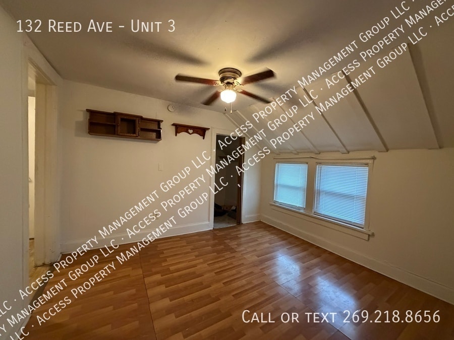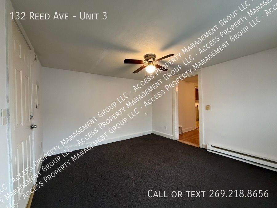 132 Reed St Apt 3 is a studio apartment located on the upper floor. This building has a common hallway in the front and rear. Unit 3 features two living spaces with windows on the west side. The second living room has a large closet. The kitchen is on the back of the unit and includes range, oven fridge and microwave. There is a full bathroom adjacent to the kitchen in the back of the unit. Tenant pays electric and trash and snow removal. There is no gas service to this unit. Heat is electric baseboard. Water/sewer and Lawn care are included. No smoking and no pets allowed. "The rental or lease of this property must comply with the City of Kalamazoo ordinance regulating the use of criminal background checks as part of the tenant screening process to provide individuals with criminal backgrounds a fair opportunity. For additional information please contact the City of Kalamazoo Civil Rights Board." $50 Application Fee Per Adult Does Not Have A/C Driveway Shared No Laundry Facilities No Smoking! Not Pet Friendly Security Deposit Equal To 1 Month's Rent Tenant Pays Electric Tenant Pays Trash Tenant Removes Snow