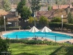 Single story end unit townhome in this highly desired quiet Oak Park neighborhood! Rarely available end unit with only 1 attached wall & 2 car garage.Loads of guest parking across from this unit. Light & open floor plan with vaulted ceiling, wood-like floor, neutral carpeting & replaced windows. Living room with fireplace, formal dining area. Upgraded kitchen with recessed lighting, travertine counters and floor and new refrigerator. Primary bedroom with vaulted ceiling. Primary bath with upgraded stone tile shower & walk-in closet. Second bedroom has an adjoining upgraded bath with travertine tub & shower surround. Large patio with mountain views. Great location overlooking a park. Community pool, spa & 2 tennis/sports courts. Award Winning Oak Park Schools! Hiking, parks, schools this beautiful neighborhood has it all! No pets.