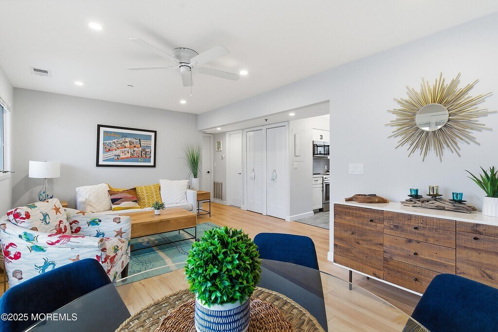 Winter Rental Updated 2 bed,1 bath upper-level winter rental in a well-kept North End building,steps from Ortley Beach. Features an open layout with bamboo floors,newer kitchen with SS appliances,bright dining area with French doors to a private balcony,plus 2 spacious bedrooms and a tiled bath. Includes in-unit W/D,extra storage,central air,and covered carport. Short walk to beach,boardwalk,bay,and shops.