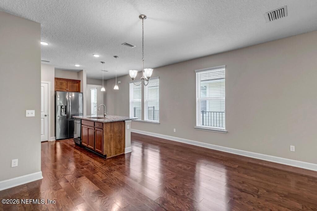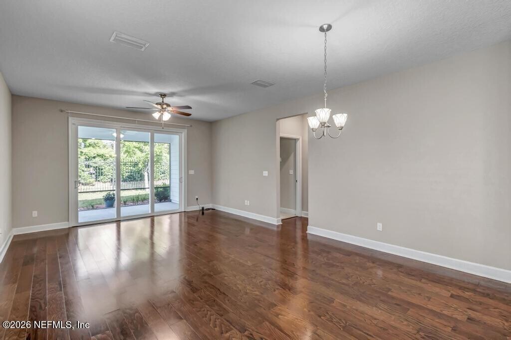 Nocatee amenities included! 3 bedroom,2 bath one-level home located in Liberty Cove at Nocatee. Granite countertops,LG Black Stainless Refrigerator/Stove/Microwave,wood flooring throughout open areas. The primary suite has a bay window bump out giving space for a sitting area. The garage,laundry and entryway include a 3' extension giving more storage space at the front of the home. Relax in the screened-in patio with a view to the fully fenced in back yard. Pets welcome! Lawn & pest included. PIA/Nease school zone MLS# 2139637