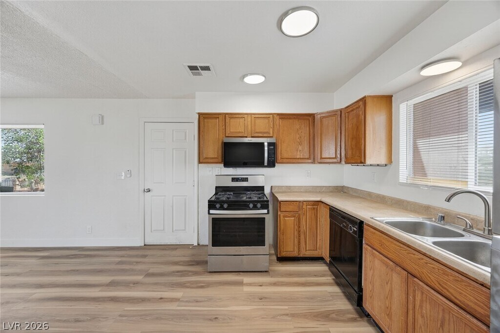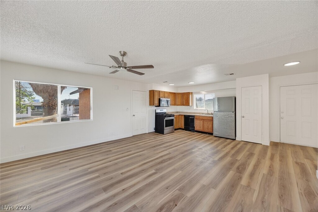 Fresh updated on this great single story home with oversized yard. Inside this home you will find new luxury vinyl wood look plank flooring throughout. New 5 inch baseboards to finish off the grand feel to the new flooring. Large open concept living, dining and kitchen spaces. Nice living area with ceiling fan with light fixture and sliding glass door for patio access. Kitchen with stainless steel appliances, microwave and pantry. Ample counter and cabinet space. Nice size primary bedroom with double closets. Primary bath with shower and antique style cabinet and sink. Hall bath updated with new cabinet & counter top. Tub with tile surround. Bedrooms with ceiling lights. Large yard so plenty of space to spready out. Have a play area if needed, perhaps create some gardening space if that is your pleasure. 2 car attached garage with indent for extra storage. Near bus lines if needed and freeways for an easy commute. MLS ID 2775357