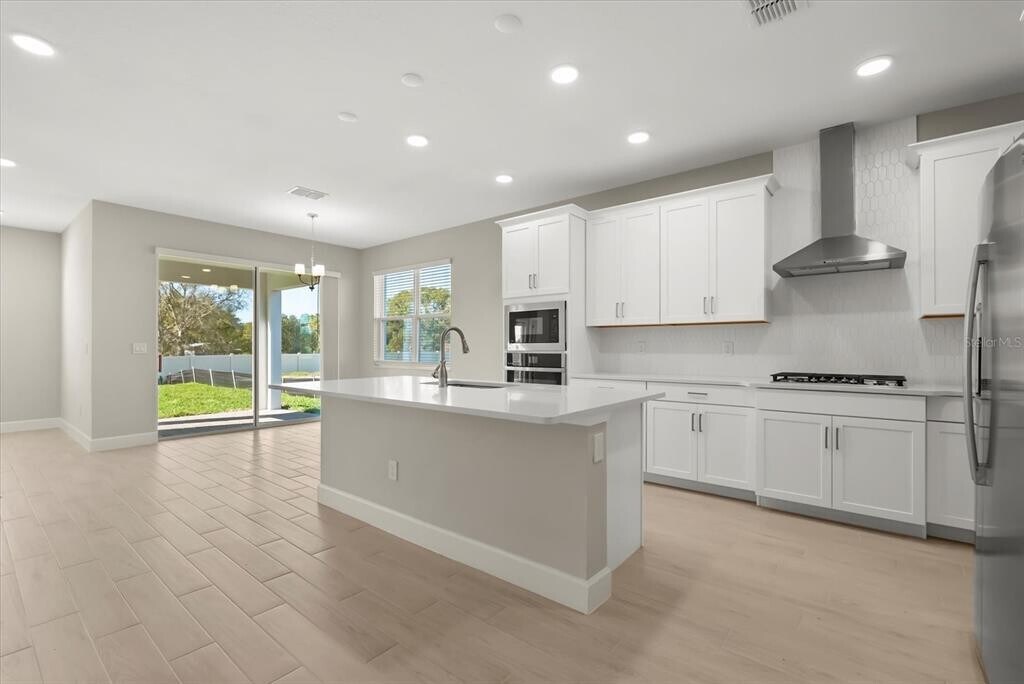 One or more photo(s) has been virtually staged. Step into a brand-new,never-lived-in home in Center Lake Ranch,just 20 minutes from Lake Nona. With 5 bedrooms,4 baths,and over 3,500 square feet,this home was designed to feel open,comfortable,and easy to live in. Tile floors lead you to a versatile flex space,perfect for an office or dining room. Enjoy a bright,open kitchen with quartz countertops,gas cooking,and built-in appliances that flow naturally into the main living area. A full bedroom and bath on the first floor make hosting guests or avoiding stairs effortless. Upstairs,the primary suite feels like a true retreat,complete with a private balcony,and a spa-style bath with dual sinks,a soaking tub,and walk-in shower. A large loft invites movie nights,workouts,or playtime,while three additional bedrooms,one with its own ensuite,really helps round out the space. Past your sliding glass doors,you have a covered lanai and ample backyard space for you to uitilize. Enjoy access to the community pool and a growing 10-acre central park,all within a pet-friendly neighborhood. Thoughtfully designed and close to everything Lake Nona and Saint Cloud have to offer,this is a home meant to be lived in. MLS# O6375911