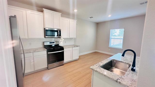 Stunning two-story 3 bedroom 2.5 bath home with open concept layout, abundant natural light and gorgeous upgrades throughout in Highly rated Princeton ISD! Kitchen with stainless steel whirlpool appliances, Gas cooktop, sparkling quartz countertops and ample 42' cabinets! No carpet in the main areas - luxury vinyl plank! Laundry is plumbed for both electric & gas. Wifi enabled garage features tankless water heater and EV car hookup. Spacious fenced backyard! Community amenities include playground, fenced-in dog park, & hiking and biking trails. Fantastic location within minutes of both downtown Princeton & McKinney, wineries, local shopping and restaurants