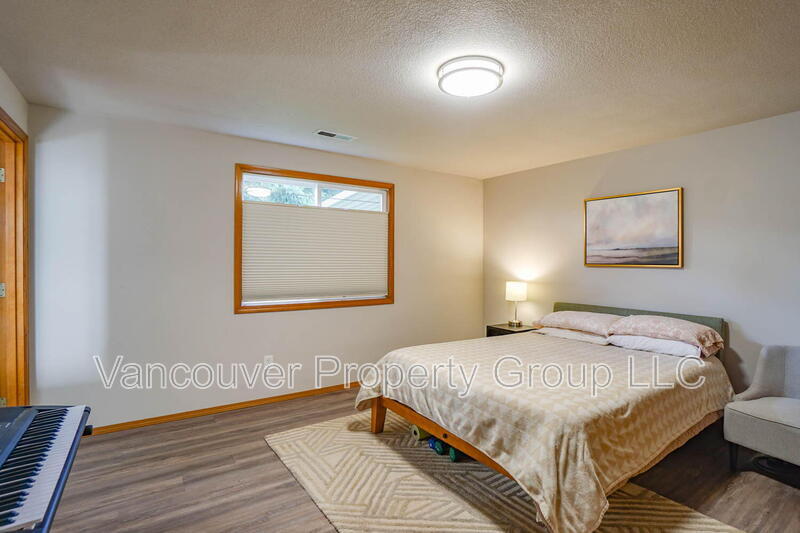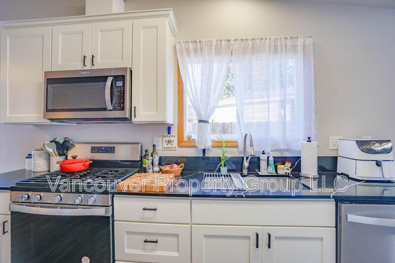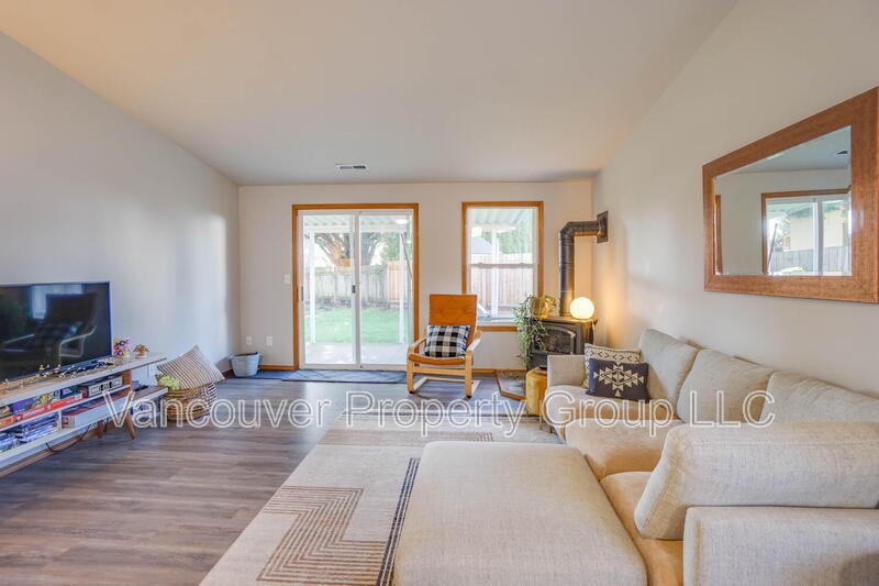 This clean, comfortable 3-bedroom, 2-bath single-family home in Vancouver, WA is move-in ready and located on a quiet cul-de-sac in Pebble Creek. The home features luxury vinyl plank flooring throughout, new soft-close cabinets with quartz countertops, and stainless-steel appliances including a gas range and large pantry. Central air will keep you cool this summer, and a gas forced air furnace installed in December 2017 provides efficient heat. The vaulted living room offers a cozy freestanding gas stove, and the large, fully fenced backyard includes a covered patio—perfect for entertaining family and friends. Schedule a showing! No Smoking. Pet Restrictions: 2 small to medium dogs. Application Terms & Conditions: No evictions. Income must be more than 2.5x Rent. 650 minimum credit score 1 year lease minimum