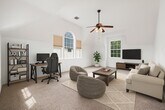 Welcome to this gorgeous home in the prestigious gated community of Orchard Lake Estates! Fresh paint and new carpeting! A grand entry flows into the formal dining room,office,and a stunning two story family room. The gourmet kitchen is a chef's dream,featuring stainless steel appliances,island,and walk-in pantry. The primary suite,located on the first floor,boasts wood floors and a spa-like ensuite bathroom with double sinks,a relaxing spa tub,separate shower,and a large walk-in closet. Upstairs,you will find a game room,media room/2nd office,and three generously sized bedrooms,all with walk-in closets,and two Jack and Jill baths. The expansive backyard is perfect for outdoor gatherings in the gazebo. Community has several natural lakes,a playground,walking trails and a swimming pool and is conveniently located off FM 1464,near Shadow Hawk Golf Club,with easy access to highways,with quick access to restaurants and retail. See our walk-thru video! MLS# 29755492