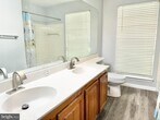 Gorgeous three level Colonial on a quiet cul de sac in the Twin Oaks Farm community. Tons of living space on all three levels! Cozy upgraded kitchen with stainless steel appliances, upgraded countertops, and soft close maple cabinets. Enjoy cooking with friends with the table space off the kitchen that flows out onto the rear deck! Spacious deck backs to trees; walk down the deck into the hiking path or stamped concrete patio with loads of space and firepit. Whether you prefer entertaining friends and family, or just relaxing around nature, this home is for you. Upper level has four large bedrooms, vaulted ceilings, and tons of closet space. Hall bath is updated with double vanity. Master suite has a sitting room, fan/light, walk-in closet and renovated luxury master bathroom with soaking tub, large double shower, dual vanities, and skylights. The basement is fully finished with a extra bedroom NTC, laundry/storage room, large recreational area and extra bathroom! Home backs to common area park, stream, and mature trees. Tons of community amenities including outdoor pool, club house, walking trails, basketball court, and playgrounds. Close to schools, commuter lots, and I-95. Easy to all the shops and restaurants that Woodbridge has to offer!