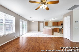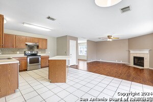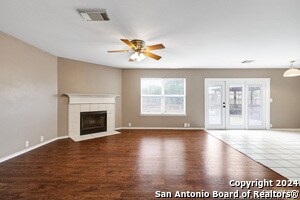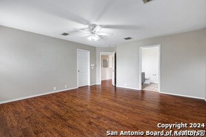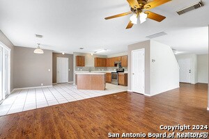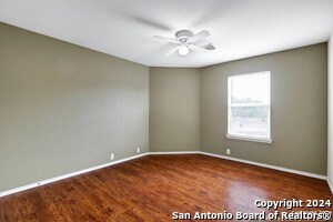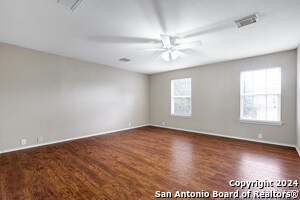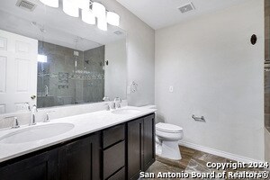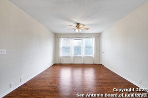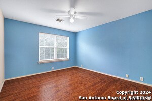 Discover this stunning two-story gem nestled in the coveted Woodthorn subdivision. Step inside to experience a spacious, open layout accentuated by high ceilings and versatile living and dining areas. The bright, modern kitchen is designed for those who love to cook and entertain, featuring an island and abundant storage. Enjoy the beauty of laminate and ceramic flooring throughout, with no carpet to be found. Ceiling fans are installed throughout the home for added comfort. Upstairs, you'll find all bedrooms along with a large, flexible loft area. The primary suite impresses with its generous size, a custom walk-in closet, and a fully tiled walk-in shower that boasts two benches and dual shower heads-a true retreat! The backyard is a true highlight, offering a spacious deck with an attached gazebo and privacy fence, perfect for outdoor relaxation. Conveniently located near the Medical Center, UTSA, shopping, dining, and more, this home is an exceptional find!