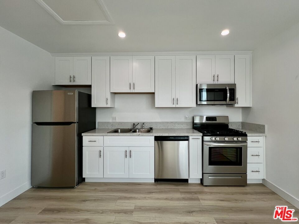 Discover modern urban living in this top-floor 1-bedroom, 1-bathroom apartment in East Hollywood. Fully remodeled with an open kitchen/living space, with brand new flooring, fixtures, and cabinetry. Enjoy new stainless steel appliances, in-unit washer/dryer, Mini-Split AC unit, and modern lighting. Abundant natural light throughout. Includes off-street parking in your own garage! Located in a small 4-unit property in a great neighborhood. Don't miss this gem! MLS# 26656995