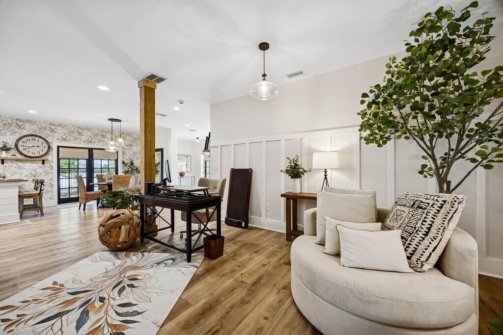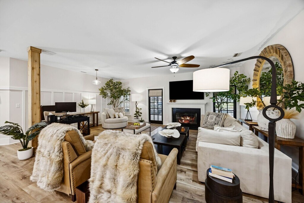 Live the island lifestyle in this beautifully furnished 3-bedroom, 2-bath home offering 2,048 square feet of living space on the desirable south end of Amelia Island. Located within easy biking distance to the beach, this home blends coastal charm with comfort and convenience. The bright, inviting interior features an open living space with warm wood flooring, stylish furnishings, and a cozy fireplace that creates a welcoming atmosphere. Large windows bring in natural light and offer views of the peaceful surroundings. The fully furnished home includes a well-appointed kitchen, spacious bedrooms, and thoughtfully designed living areas that make it move-in ready. Step outside and enjoy your private swimming pool, perfect for relaxing or entertaining while enjoying the island climate. The exterior showcases classic coastal architecture surrounded by mature trees and beautiful landscaping that enhances the home's relaxed island feel. Monthly Rent: $4,950 Lease Type: Long-term furnished rental Included in Rent: Lawn maintenance Pool service Termite bond Property Highlights 3 Bedrooms | 2 Bathrooms 2,048 Sq Ft Fully Furnished Private Swimming Pool South End Location Biking Distance to the Beach Quiet, established neighborhood Enjoy the best of island living with easy access to beaches, bike paths, dining, and shopping throughout Amelia Island.