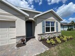 Stunning brand-new 2026 construction 4-bedroom,2-bathroom,2-car garage waterfront home situated on an oversized lot! Conveniently connected to city water and sewer,with a fence currently being installed for added privacy. This spacious open-concept layout features a stylish upgraded kitchen with quartz countertops,modern cabinetry,a large sit-in island,and ample space for entertaining. The master suite offers a tranquil retreat with waterfront views,and the master bathroom features dual sinks,quartz countertops,and spacious walk-in closets. Step outside to enjoy true Florida living as you relax on your lanai,taking in peaceful canal views and coastal breezes. Additional highlights include stacked stone exterior accents and a brick paver driveway,enhancing the home's curb appeal. Equipped with the “Home is Connected” smart home package. Ideally located close to shopping and dining. Don’t miss this opportunity to live in a brand-new waterfront home offering the perfect blend of modern luxury and Florida lifestyle—schedule your showing today!
