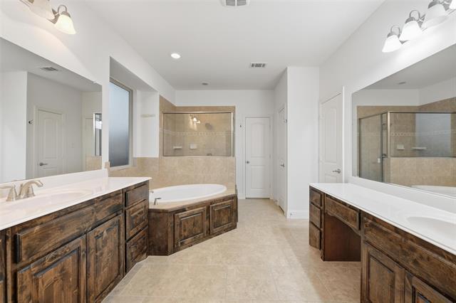 FALL SPECIAL - $250 OFF FIRST MONTH'S RENT! Welcome to this stunning 5-bedroom, 4-bathroom home located in the vibrant city of Frisco, TX. This corner lot property boasts an array of impressive features, including granite counters, upgraded ceiling fans, and vaulted ceilings. The open floorplan is bathed in natural light, highlighting the spacious kitchen island and stainless steel appliances. The master suite is a true retreat, located downstairs for added privacy, and includes a walk-in closet, separate tub, separate vanities, and walk-in shower. The home also features a separate formal dining room for family gatherings, and a cozy fireplace, perfect for those cooler evenings. The home office is private, featuring french doors and font views. Bonus room can be a 6th bedroom or media room. Outside, you'll find a tall privacy fence, covered porch extends your living space and the large backyard is ideal for outdoor activities or simply enjoying the Texas sunshine. The double car garage provides ample storage and parking space. Plus, the home's location is just a stone's throw away from community parks and playgrounds, shopping, restaurants, PGA golf course and other exciting future attractions. Experience the perfect blend of comfort and convenience in this beautiful Frisco home.
