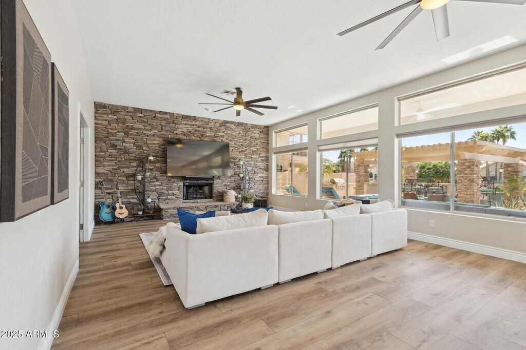 Welcome to your dream lakefront escape! Nestled in a quiet cul-de-sac,this stunning 4,000 sq ft home is partially furnished and available for short or long-term rental. Enjoy breathtaking lake views and a fully upgraded interior featuring brand-new flooring,a custom kitchen with quartz countertops,and high-end appliances. The oversized master suite offers true retreat vibes with a private balcony,dual fireplace,jetted tub,and spacious walk-in closet. Step outside to your resort-style backyard complete with a negative-edge heated pool,spa,outdoor kitchen,gazebo,and cozy fire pitsperfect for entertaining or relaxing. Located just minutes from downtown Gilbert and Chandler,with access to local community events and boating opportunities. No pets.