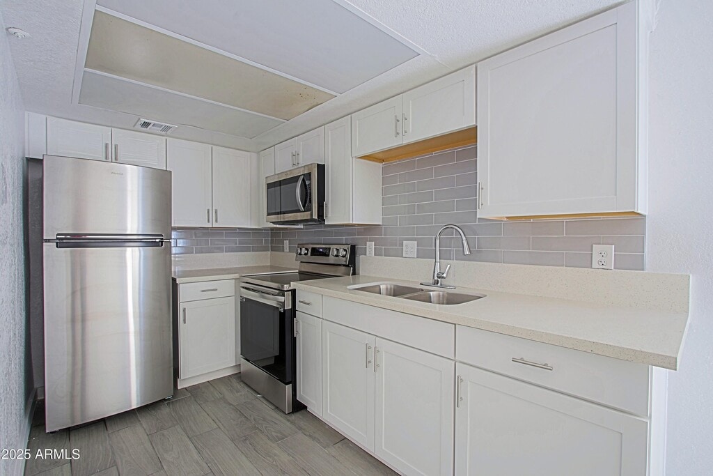 Great Price on a 3-bedroom condo in a fantastic location! This unit boasts a spacious kitchen equipped with white shaker cabinets,a pantry,stainless steel appliances,an undermount stainless steel sink,and gorgeous quartz countertops,making it ideal for all your culinary endeavors. The modern grey subway tile backsplash enhances the kitchen's stylish appeal. The home features beautiful tile flooring,creating a spacious and inviting atmosphere,ready for you to enjoy! The bedrooms are well-sized,complete with fans and blinds for comfort. Convenience is key with a stackable washer and dryer included. Step outside to a grand private yard with turf,perfect for barbecues or simply unwinding. Covered parking available. Incentives included in price.