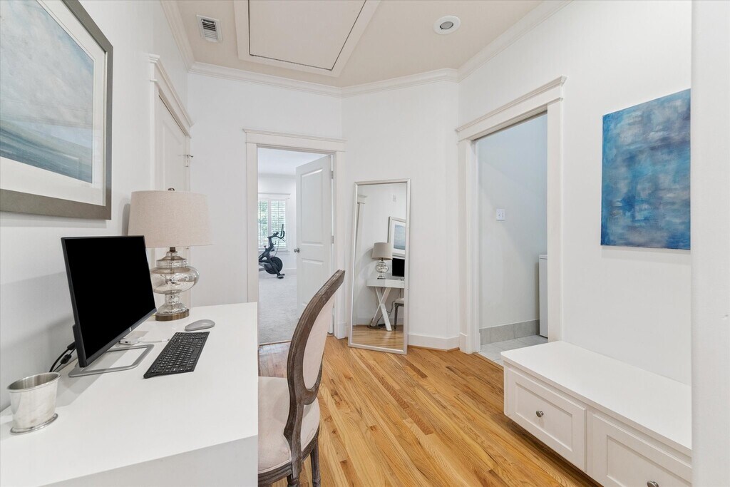 Freestanding Heights home with first-floor living,private driveway,2 car garage and a spacious backyard. The open concept main level features hardwood floors,plantation shutters,crown molding,and designer light fixtures. Updated kitchen with granite countertops,stainless appliances,and a large walk-in pantry. The primary suite includes a spa-like bathroom with double sinks and quartz countertops. Additional oversized bedroom with double closets and en-suite bath. Other highlights include bonus space for an office and abundant storage throughout. Ample outdoor living with a covered front balcony and a low-maintenance yard with turf. Prime location near neighborhood restaurants,coffee shops,and the heights hike and bike trail. MLS# 17471981