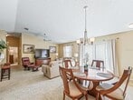 RENT BEFORE YOU BUY!!! This 2-bedroom, 2-bathroom patio villa is located in the Village of Duval. The open floor plan includes a kitchen with ample counter space, an island with seating for three, and a dining table for six. The living room has plush seating and a TV with cable. The master bedroom has a queen bed, cable TV, and an ensuite bathroom with a walk-in shower. The guest bedroom has a full bed, cable TV, and access to a bathroom with a tub/shower combo. The screened front lanai offers a quiet outdoor space for coffee or relaxing. Located between Lake Sumter Landing and Brownwood Paddock Square, with access to live music, dining, and shopping. Nearby amenities include Turtle Mound and Sandhill Executive Golf Courses, Allamanda Family Pool, and St. Charles Adult Pool. July-October $2400(monthly) plus taxes and fees- November and December $2610(monthly) plus taxes and fees PLEASE CALL FOR PEAK SEASON(JAN-MAR) & WEEKLY RATES