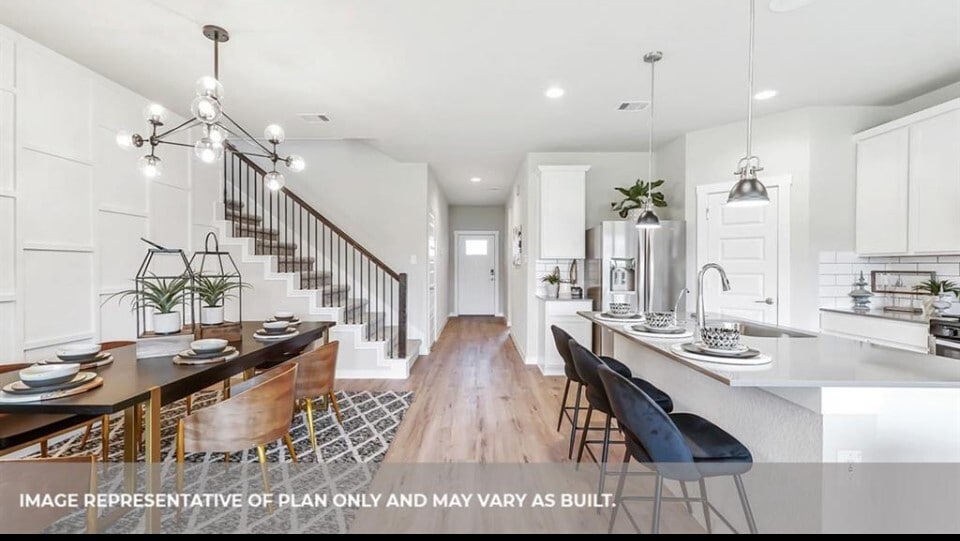 Welcome to this stunning lake front property featuring the Mitchell plan,a two-story home with 4 bedrooms,3 baths,and a 2 car garage. The kitchen boasts beautiful countertops,stainless steel appliances,and a corner pantry,opening to a split dining area and family room. Comes with filtered water softener installed. The primary suite offers a luxurious bath with dual vanities and a walk-in closet. Upstairs,a versatile game room leads to two additional bedrooms and bath. Enjoy the standard rear covered patio off the family room. This is a must-see home with amazing lakefront views and modern amenities that comes with residing in Sierra Vista West. MLS# 29130170
