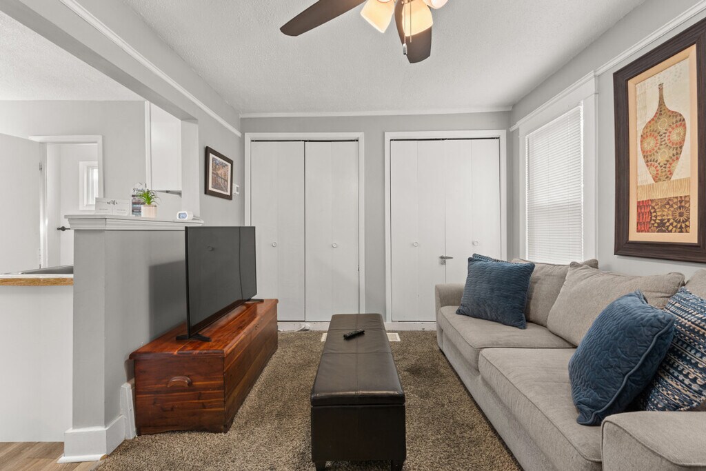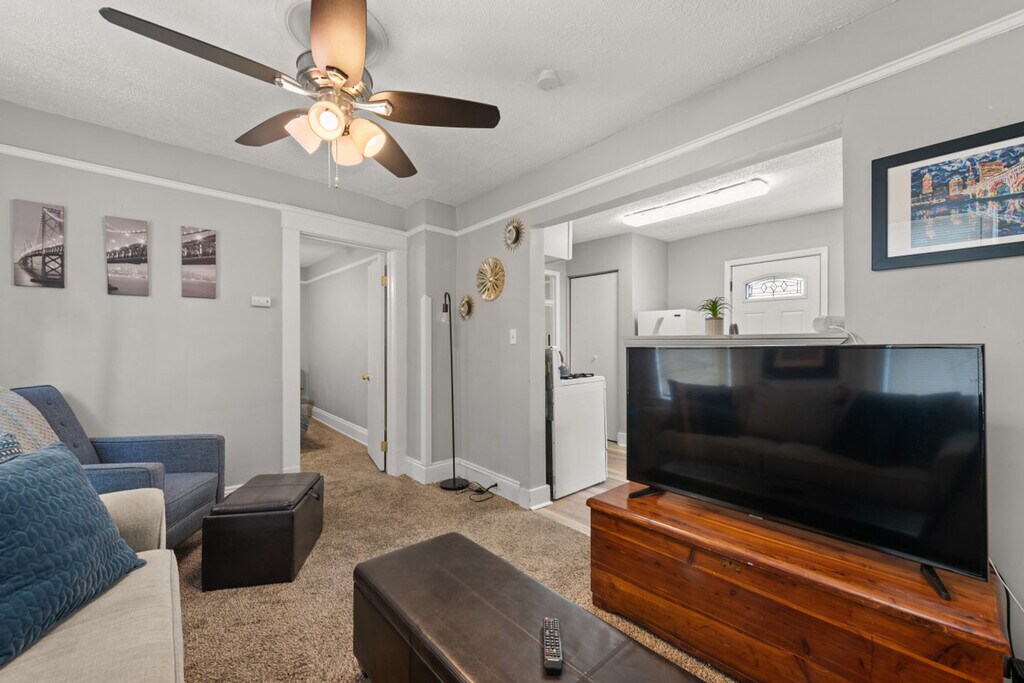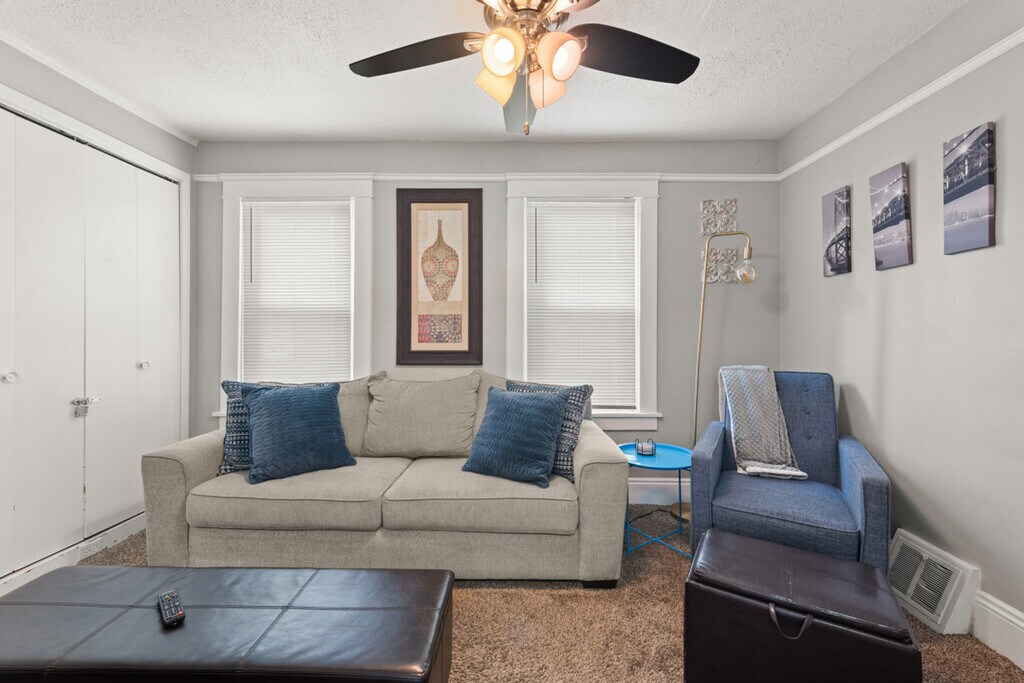 Welcome to this charming 2-bedroom apartment in the vibrant Gordon Square neighborhood. Feel at home with all the comforts you need, while being just steps away from the city's best restaurants, shops, and entertainment. This pet-friendly rental is perfect for families, friends, and couples looking for a cozy and convenient urban getaway. After a day of exploring, relax and unwind in this fully furnished apartment. Snuggle up on the comfortable couch in the living room or cook a delicious meal in the well-equipped kitchen. With ample street parking available, you won't have to worry about finding a spot for your car. A maximum of 2 dogs are allowed for a flat fee of $125 per stay. Requests to bring a 3rd or 4th dog are subject to approval and will incur an additional $100 fee. Undisclosed pets will result in a $150 fee and may lead to reservation cancellation without refund. There is a designated parking spot reserved for guests with a handicap permit. Any vehicles parked there without the proper permit may be ticketed or towed. The driveway is reserved for the long-term tenant, but you can use street parking. Explore the city by foot and discover all the exciting opportunities that Cleveland has to offer. A leisurely walk to Edgewater Park will give you a taste of both city and nature. With easy access to downtown and popular neighborhoods like Lakewood, Ohio City, Hingetown, and Tremont, you'll be close to all the top attractions and events. This apartment resides within a multi-family building. Guests are expected to treat the entire building like their home and the tenants like their neighbors. There are decibel readers that track noise levels outside, and there is a $500 fine for excessive noise levels between 10pm and 8am. No indoor smoking is allowed, with a minimum $500 charge for extra cleaning, but smoking outside is permitted. Weapons of any kind are strictly prohibited on the property. No underage consumption or drugs are allowed, and no parties or large gatherings are permitted. You will be charged $150 for late checkout without prior notice. Please remove your shoes when entering the house to help keep the space clean and comfortable for everyone. If you violate any house rules or those of the OTA community, you will be required to vacate the property immediately, and no refund will be issued for any unused nights. If the property is equipped with a grill, guests are responsible for refilling the propane tank if needed, but just send the receipt for reimbursement. If it’s a charcoal grill, bring your own charcoal. A small list of checkout instructions is provided and appreciated to ensure a seamless transition for the next guests. [SI]