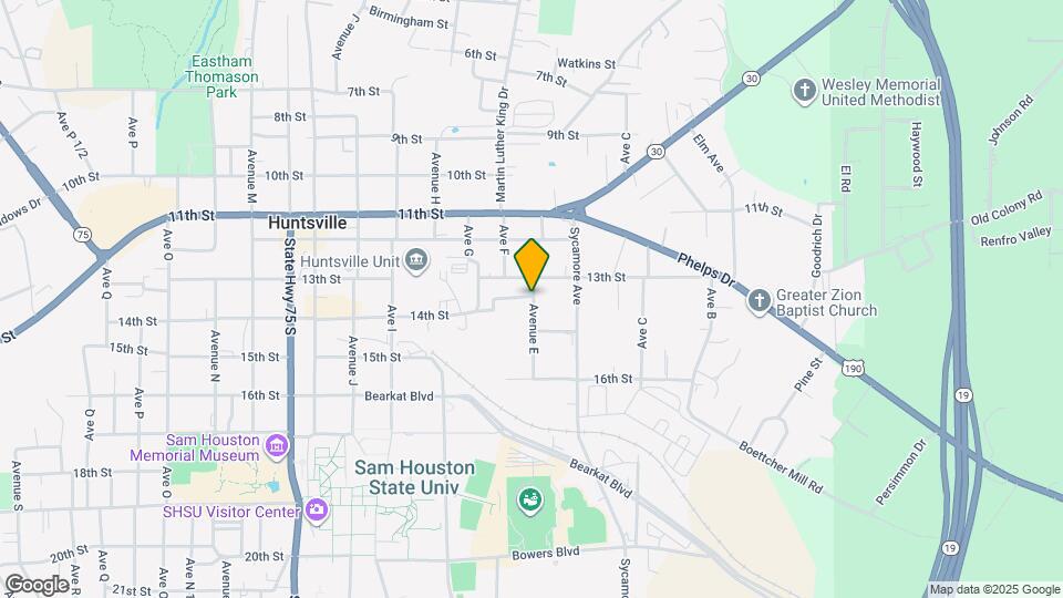 Located in the Downtown Huntsville Neighborhood, 1323 Avenue E is in the 77340 Zip Code of Huntsville, TX.