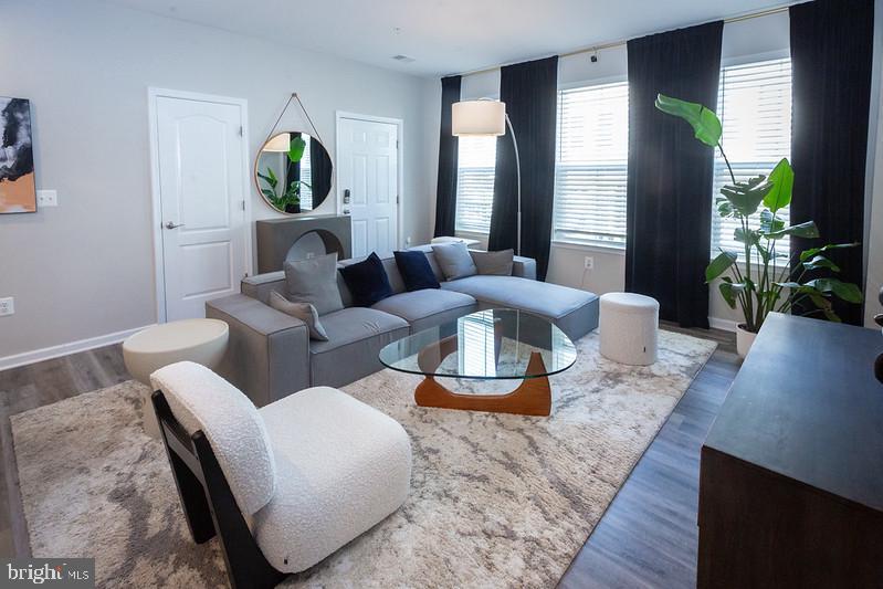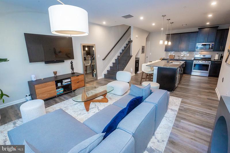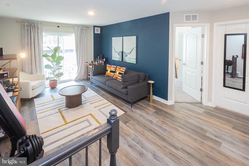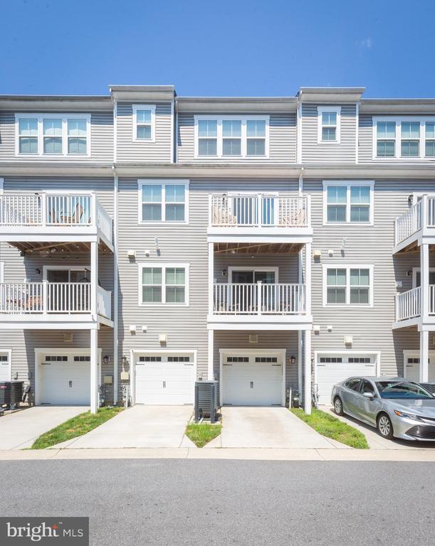 Gorgeous Garage Townhome in Crofton's Riverwalk with high-end upgrades throughout! The open-concept main level features a spacious, sunlit living room with hardwood floors and a gourmet eat-in kitchen—complete with sleek espresso finished cabinets, granite countertops, a large island with seating, stainless steel appliances, gas stove, under-mount sink, subway tile backsplash, pantry, pendant lighting, and built-in coffee bar. Also on this level: powder room, coat closet, recessed lighting, and entry from the attached garage. Upstairs boasts an open loft (perfect for office or second living area), two large bedrooms with private en-suite baths, and bedroom-level laundry with front loading washer and dryer. The primary suite is spacious and the ensuite bath features a double vanity, oversized shower, upgraded tile throughout and large walk-in closet with custom built ins. The 2nd bedroom also has an ensuite bathroom. Enjoy your morning coffee or evening wine on the private balcony off upper level family room. Tesla car charger available in garage. Community playground and ample guest parking. Prime location near Waugh Chapel shopping, dining, and entertainment. Close to schools and parks. Easy commute to Fort Meade, Annapolis, Arundel Mills, DC, and Baltimore.