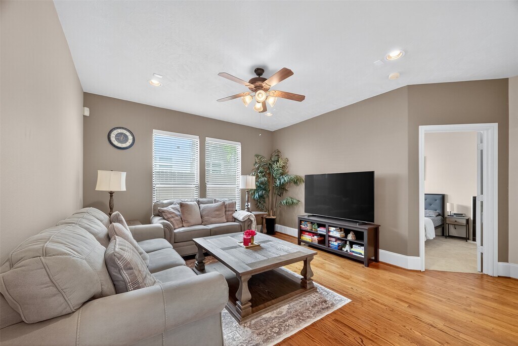 ALL you need is in this home! Been looking for a two-story home in the heart of it all and yet away from it all?! This is the one! Nestled in a gated enclave,within walking distance of exhilarating Washington Ave. is this turn key home that only requires you to bring your belongings! Open-concept home awash with natural light boasts high ceilings,hardwood floors,dual staircases and the coveted GAME ROOOM!! The ample owner's retreat features a generous walk-in closet,dual vanities separated by soaking tub. First floor bedroom adjacent to the game room offers complete privacy for guests/roommate or could double as an office. Updated lighting and backsplash,recent paint and fence are bonuses! The outdoors boast a wraparound patio area,side-yard and a sprinkler system. Guest parking is steps across from the home! Easy access to the frwy,a short ride to Memorial Park & minutes to Downtown & The Galleria! If you have discerning taste,it's time to see 1323 Studer in person!! MLS# 93138114