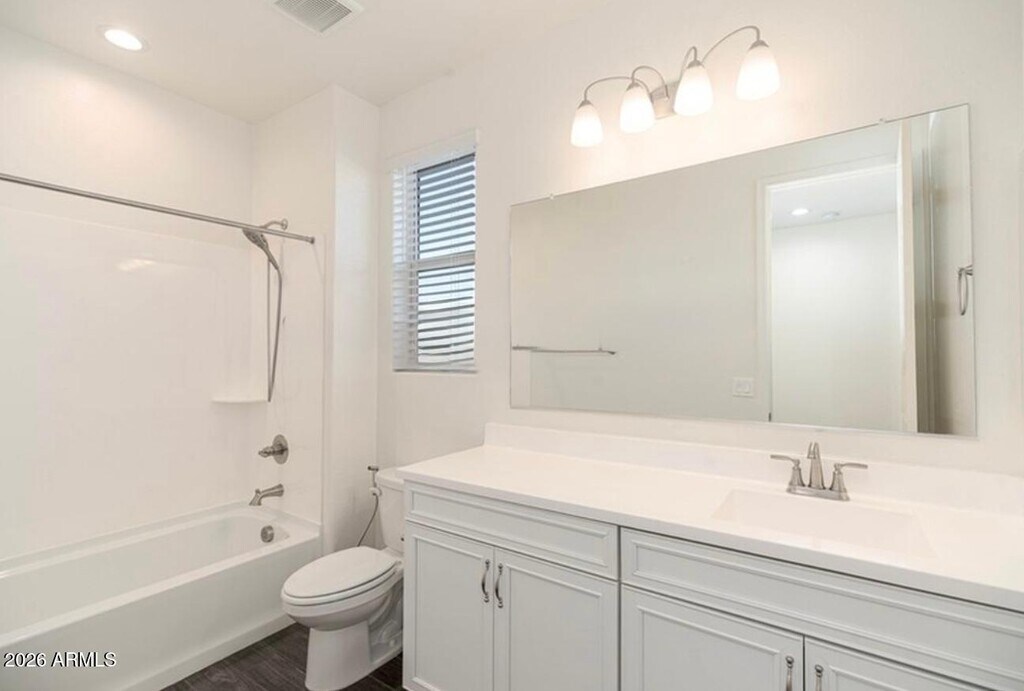 Beautiful,meticulously maintained,move in ready 3 Bed/3 Bath single storied home located in coveted Vistancia community available for rent. Home is equipped with SOLAR panels for huge energy savings. Washer,dryer,refrigerator,RO and water softener are included. This open-concept,split-floor plan boasts dark wood grain tile flooring,bright white cabinetry,quartz countertops,and stainless-steel appliances. The great room is enhanced by bi-parting double sliding doors that seamlessly connect the living space to a custom landscaped patio and yard,with artificial turf,travertine and planters. The home includes two guest rooms at the front and a cozy office adjacent to the great room. This amenity rich community features a club house,volleyball court,kids play areas